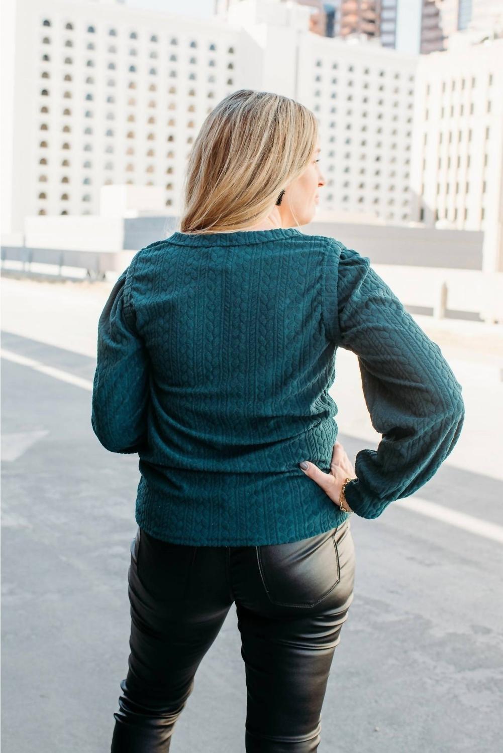 Универсальная блузка, которая подойдет как для работы, так и для ужина! Насладитесь прохладными месяцами с топом BiBi Hunter Texture Top - потрясающей зеленой блузкой, идеально подходящей для разнообразного ношения. Эта модель из 100% полиэстера с длинными рукавами, богатой текстурой свитера и выгодно подчеркивающим фигуру вырезом-лодочкой. Благодаря удобной застежке-липучке она стильно сочетается как с брюками, так и с юбками. Размер соответствует указанному; рост модели 160 см, обхват груди 34C, размер M.