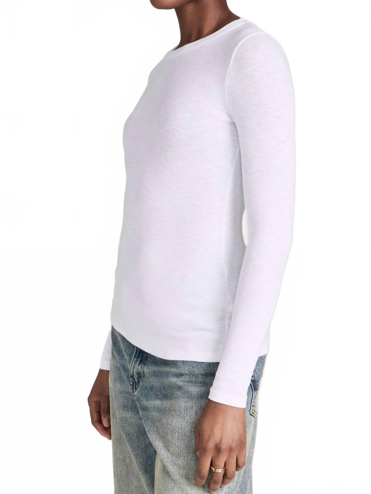 Длинный рукав, который можно носить с джинсами, юбками, да практически с чем угодно! Представляем футболку Enza Costa Textured Rib Crew Tee белого цвета с длинными рукавами, которая обеспечивает классический облегающий крой с круглым вырезом, идеально подходящий для осени. Изготовленная из мягкой смеси 97% хлопка и 3% лайкры, эта модель длиной 24 дюйма произведена в США. Она разработана для комфорта и стиля и имеет застежку-липучку. Рекомендации по уходу включают ручную стирку для оптимальной долговечности.