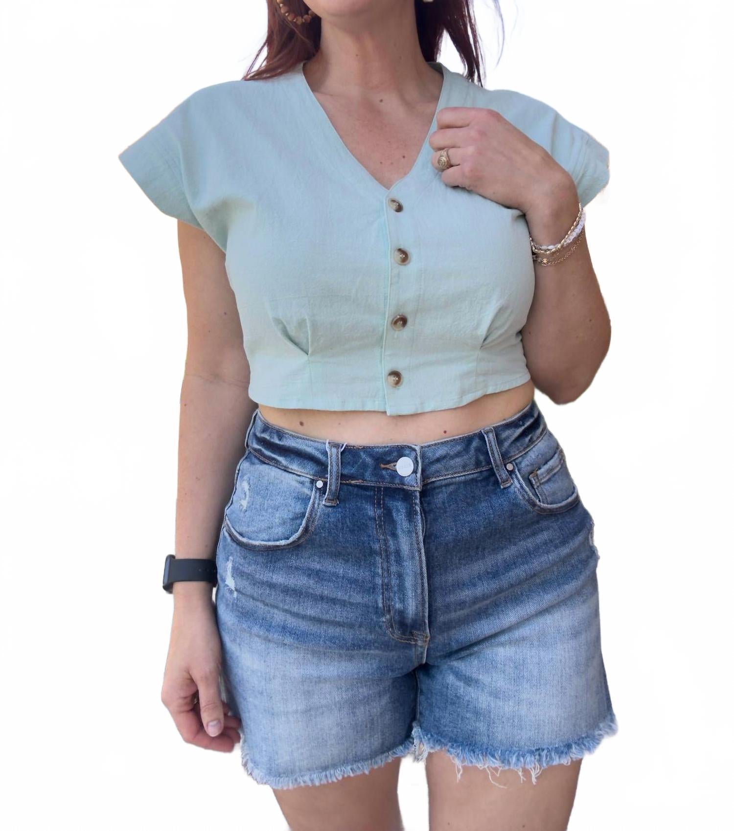 Оцените непринужденный стиль, сшитый из удобного денима модной средней степени стирки. Высокая посадка, застежка на пуговицы, легкие потертости и бахрома на подоле создают стильный уличный образ. Идеально подходит для летних путешествий, дополнена карманами для дополнительной функциональности. Уход прост: машинная стирка и сушка в стиральной машине гарантируют универсальность модели в любом гардеробе.