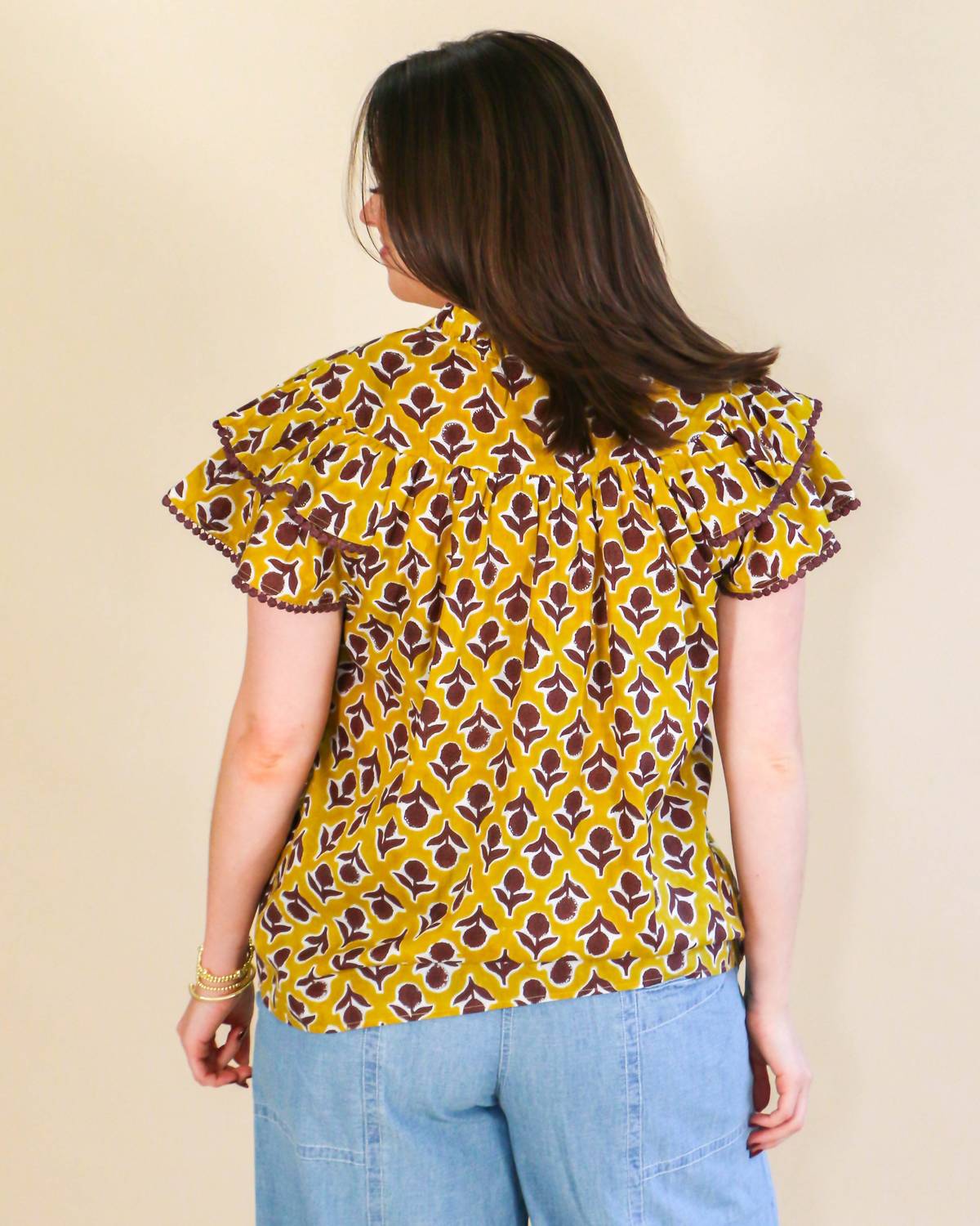 Сочетайте ее с любимыми джинсами и шлепанцами для следующего девичника. Откройте для себя топ Ivy Jane Flutter Block Top в ярком горчичном оттенке - шикарное дополнение к вашему летнему гардеробу. Эта блузка с короткими рукавами-крылышками и V-образным вырезом добавит женственности любому наряду. Благодаря удобной застежке-липучке, она идеально подходит для летних церковных мероприятий или в качестве модного элемента рабочей одежды. Эта блузка стильная и комфортная, создает уверенный и непринужденный образ.