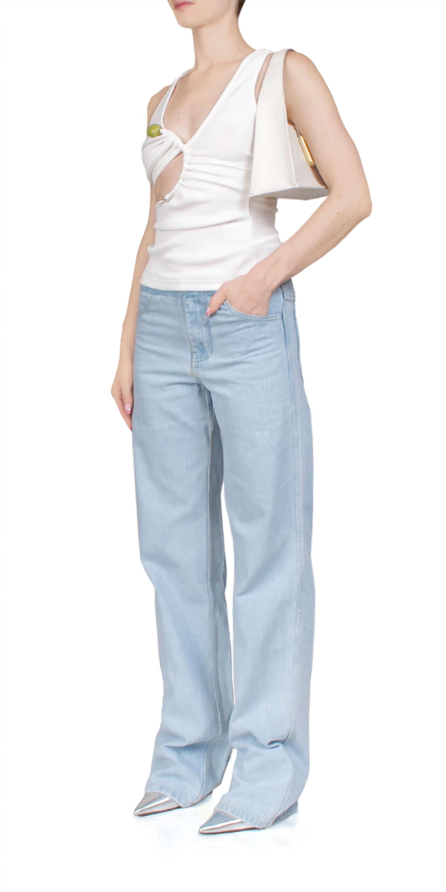 Сочетайте эти широкие джинсы с мюлями, шлепанцами или любимыми сандалиями с ремешками. Представляем джинсы Deconstructed от Christopher Esber - шикарное дополнение к вашему гардеробу в изысканном цвете Vapour. Эти джинсы с широким кроем, удлиненной длиной и комфортной средней посадкой выполнены из 100% хлопка для свободной посадки. Светлый деним и контрастный минималистичный пояс придают модели модный деконструированный вид. Застежка - пуговица. Рост модели - 175 см, размер - австралийский 6/американский 2.
