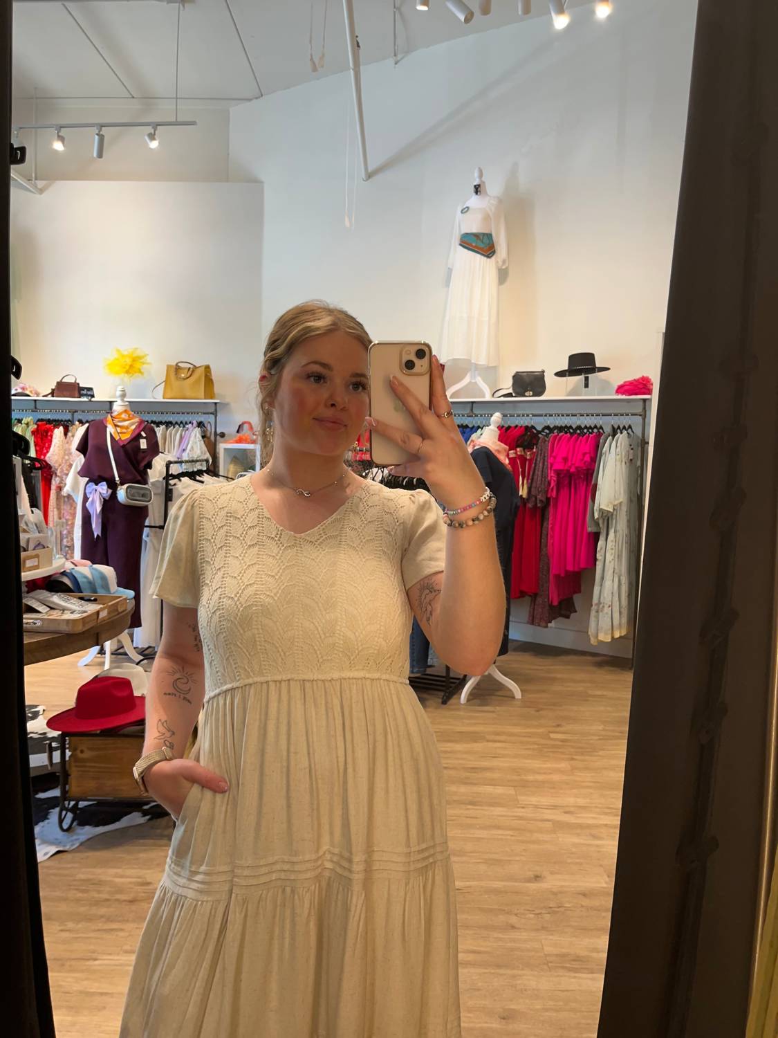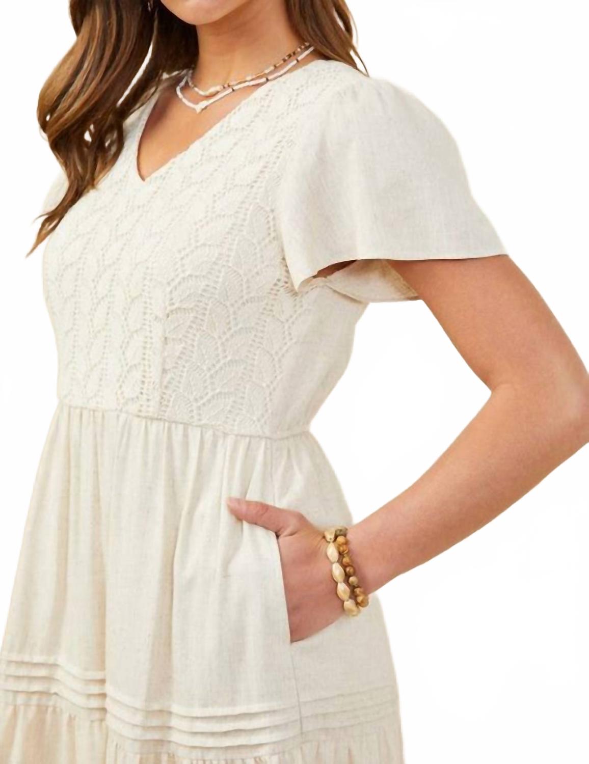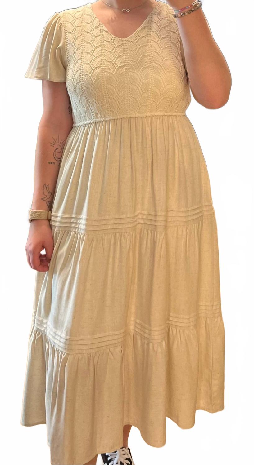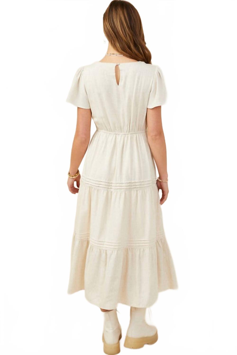 Представляем платье миди Marissa от Hayden LA - классическую модель бежевого цвета с текстурой, идеально подходящую для летнего мероприятия. Это платье А-силуэта с короткими рукавами и шикарным V-образным вырезом, а также карманами для дополнительной практичности. Изготовленное из 100% чистого хлопка с элегантным многоуровневым силуэтом, оно обеспечит комфорт и стиль. Благодаря удобной застежке-липучке, платье легко стирать вручную и сушить на веревке.