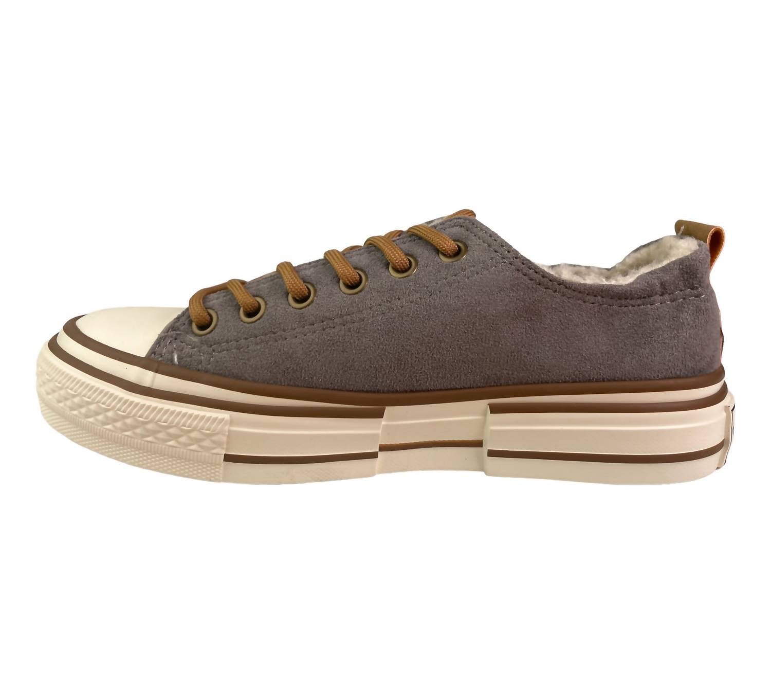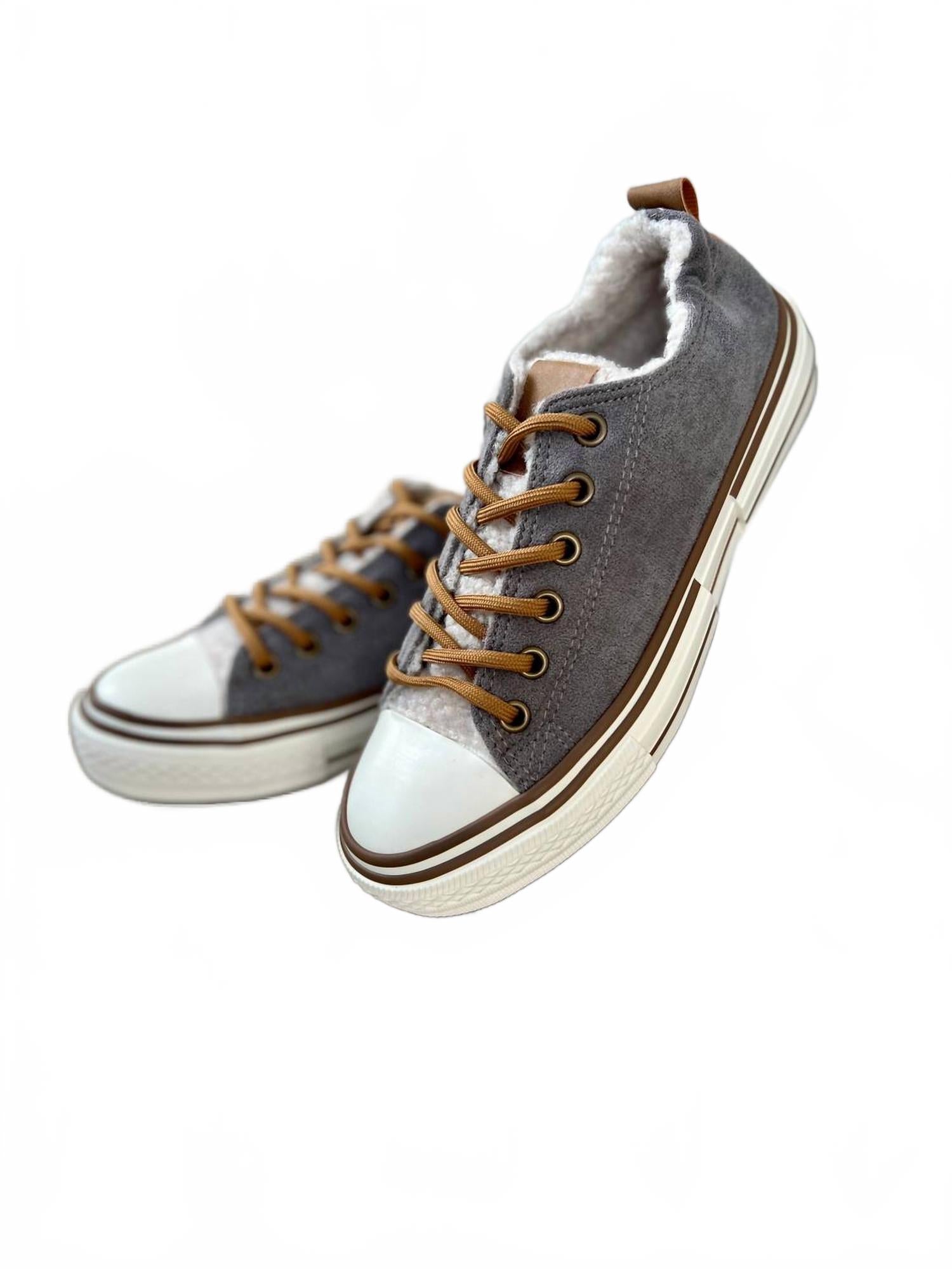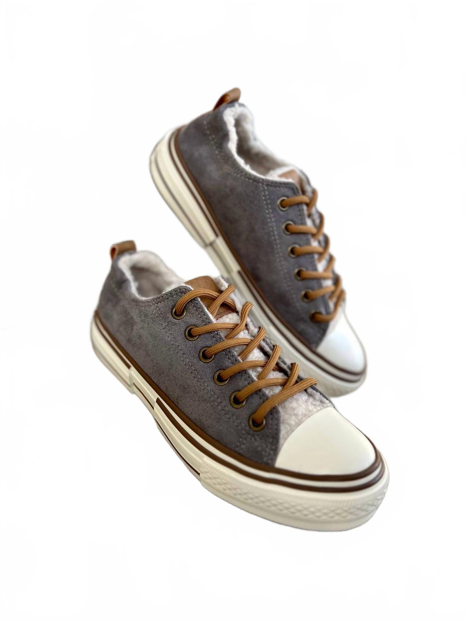 Наслаждайтесь комфортом и стилем с женскими кроссовками Soli от Very G, незаменимым аксессуаром для любителей уличной моды этой весной. Верх из серой искусственной замши с уютной подкладкой из искусственного меха идеально согреет ноги во время путешествий. Благодаря круглому носку и платформе, они добавят элегантности любому образу. Классические коричневые шнурки и резиновая подошва для дополнительной устойчивости обеспечат вам удовольствие от каждого шага в этих кроссовках, идеально подходящих по размеру.