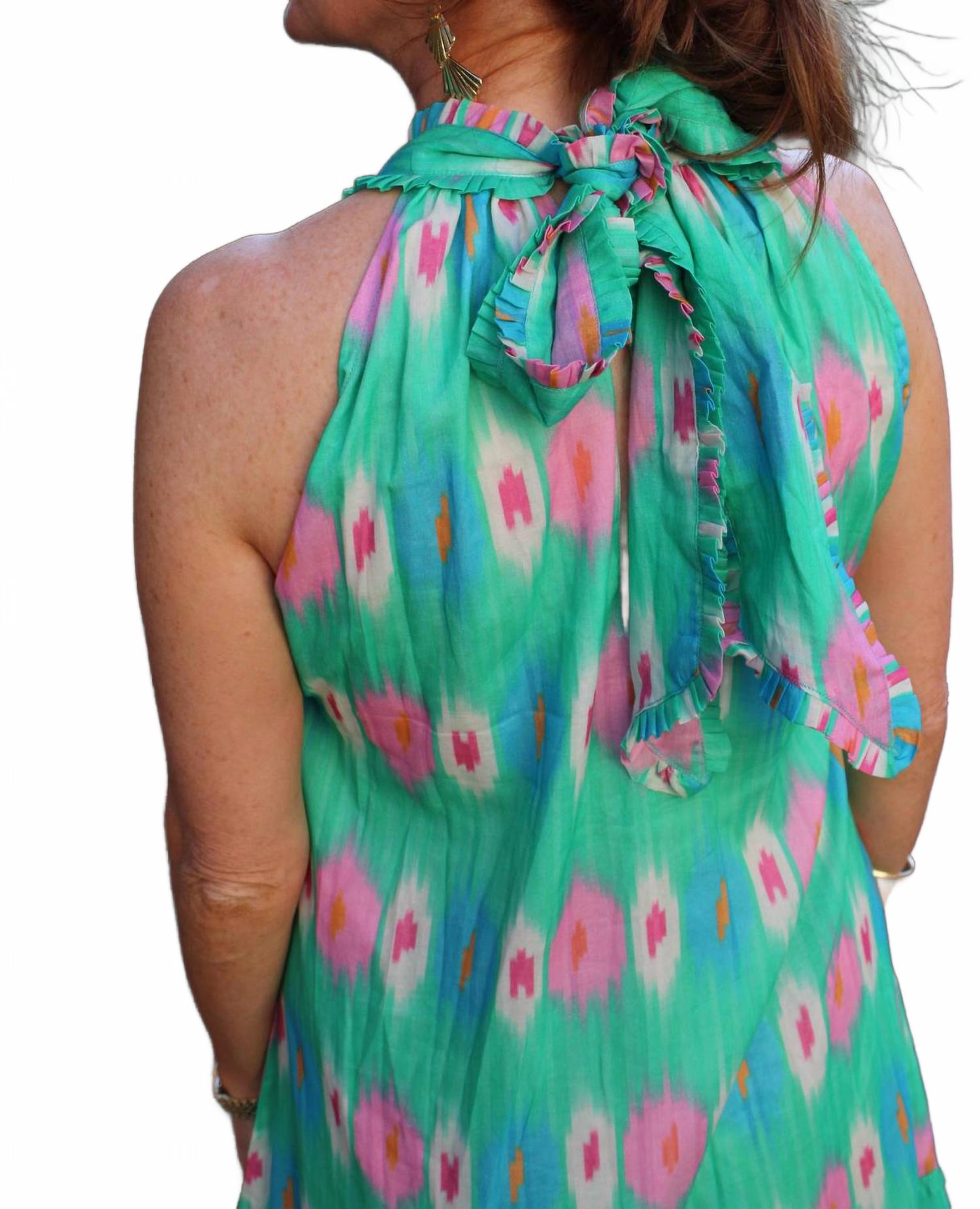 Создайте ошеломляющий образ в платье Bella Tu Camden Cutaway с халтер-бретелькой - незаменимой вещи в вашем гардеробе. Это платье А-силуэта без рукавов освежающего мятного оттенка выполнено из 100% хлопка и идеально подходит для летнего отдыха. Завязка с очаровательным бантом сзади и отделка пайетками у выреза - это платье миди поможет вам без труда выделиться из толпы. Инструкции по уходу: ручная стирка в холодной воде и сушка в подвешенном состоянии.