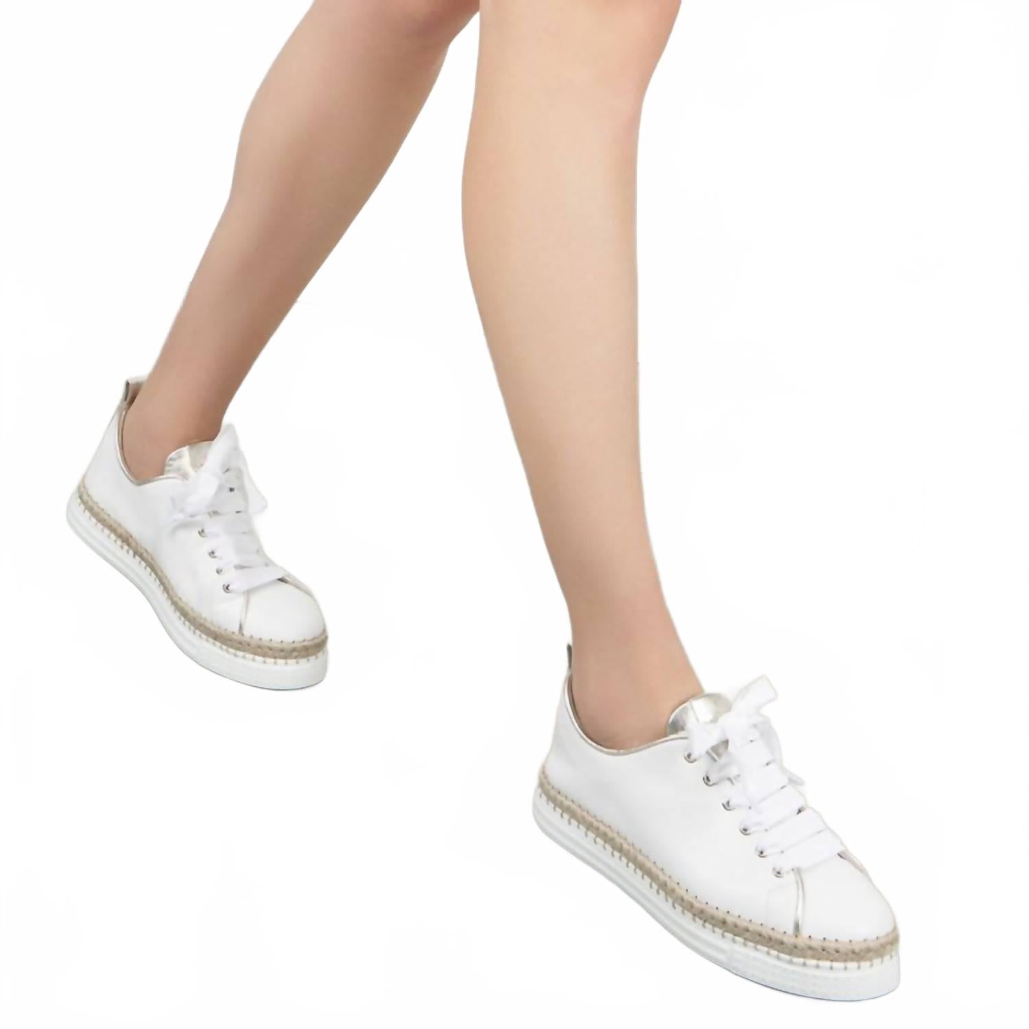 Наслаждайтесь каждым днем ​​в этих очаровательных кроссовках. Ощутите современный стиль с женскими кроссовками Neive от AGL, изготовленными из высококачественной кожи, что обеспечивает роскошный вид. Эти кроссовки классического белого цвета с круглым носком гармонично сочетают в себе изысканность и уличный стиль. Они идеально подходят для весенних мероприятий и отличаются плоской пяткой, обеспечивающей комфорт в течение всего дня. Дополните свою коллекцию кроссовок этим стильным и универсальным вариантом.