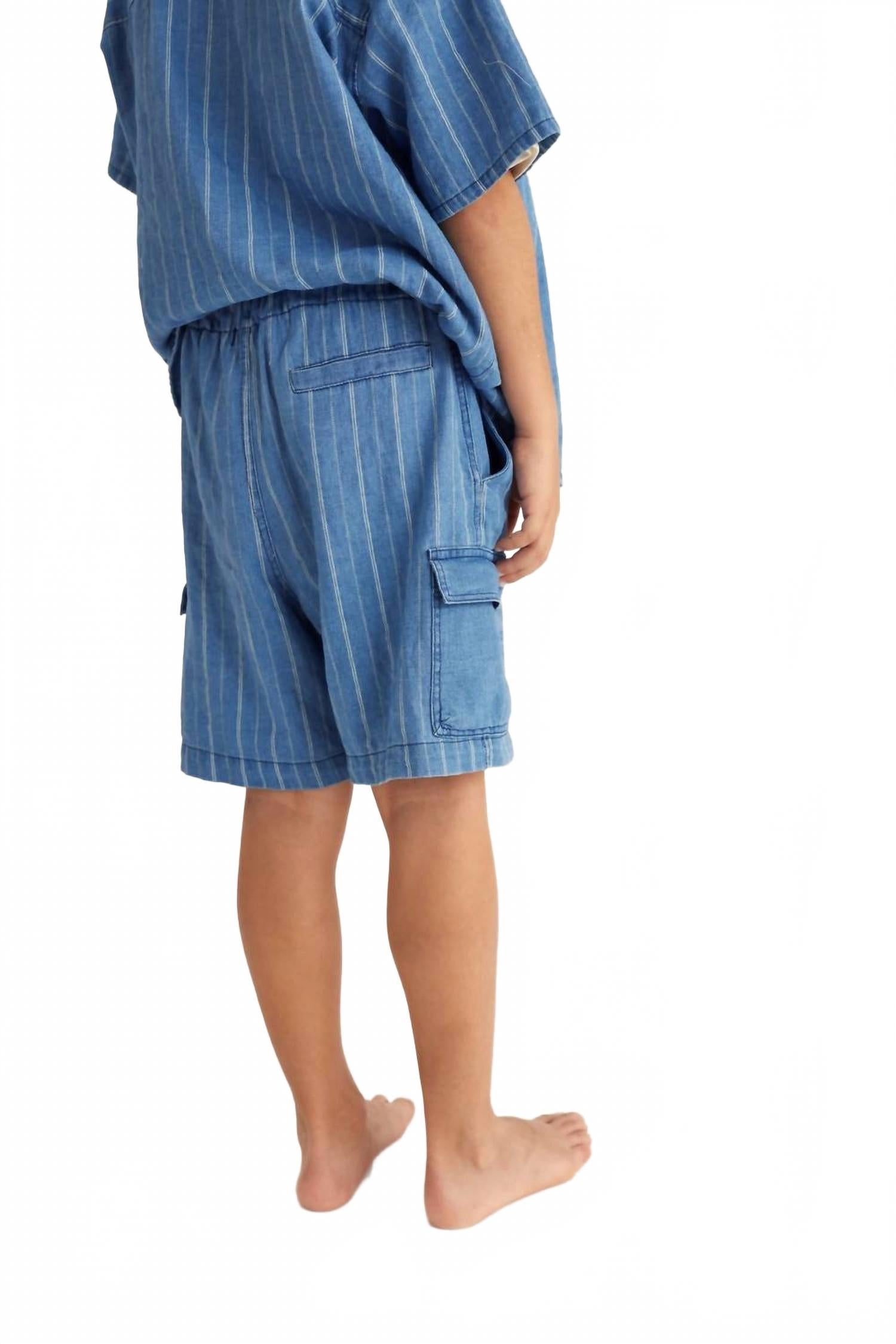 Детские полосатые джинсовые бермуды Leon в синем цвете Cozmo