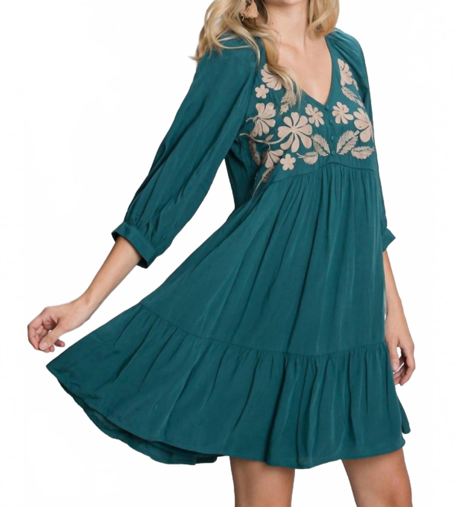Повседневное, удобное и милое! Платье, которое вы будете носить весь сезон. Откройте для себя платье-бэбидолл Evelyn от Jodifl - незаменимую вещь в вашем летнем гардеробе в ярко-зеленом цвете. Это повседневное платье с вышитой кокеткой, V-образным вырезом, рукавами-фонариками три четверти и игривым оборкой по подолу. Застежка-липучка обеспечивает легкость надевания, а легкая ткань на подкладке обеспечивает комфорт. На модели рост 178 см, размер Small - идеальное решение для отпуска с ноткой максимализма.