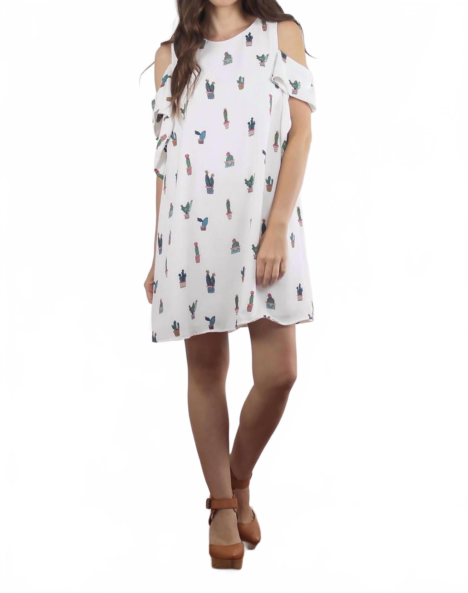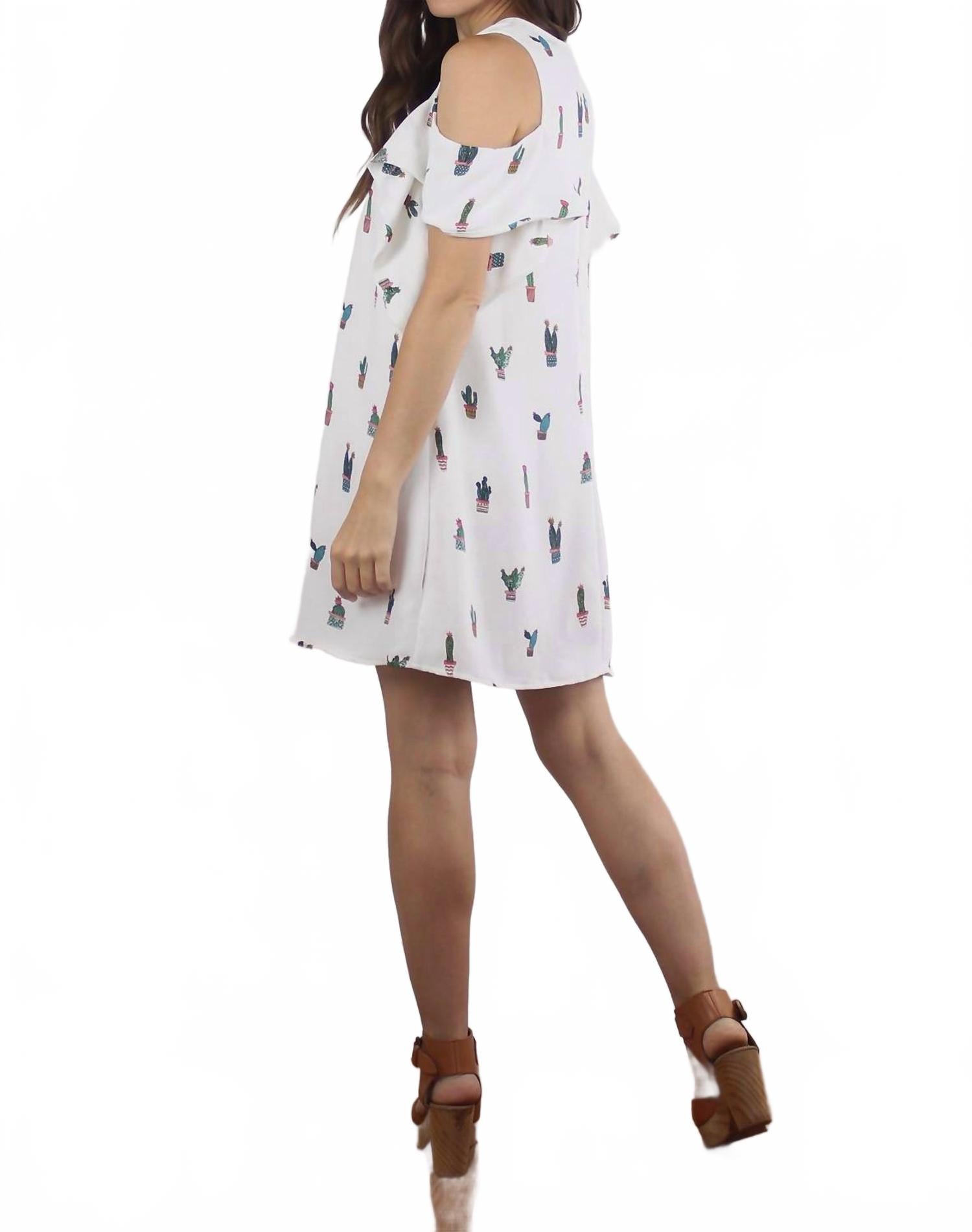 Идеальное мини-платье для теплых месяцев. Представляем платье Desert Cactus от DO+BE, которое идеально подходит для создания яркого образа благодаря нежно-белому принту с кактусами и стилю бохо-шик. Это мини-платье с короткими рукавами и вырезами на плечах придает игривую изюминку классическому А-силуэту. Платье изготовлено из 100% полиэстера и полностью на подкладке, что обеспечивает комфорт и стиль для летних мероприятий. Застежка-молния обеспечивает идеальный вид. Рекомендации по уходу: ручная стирка.