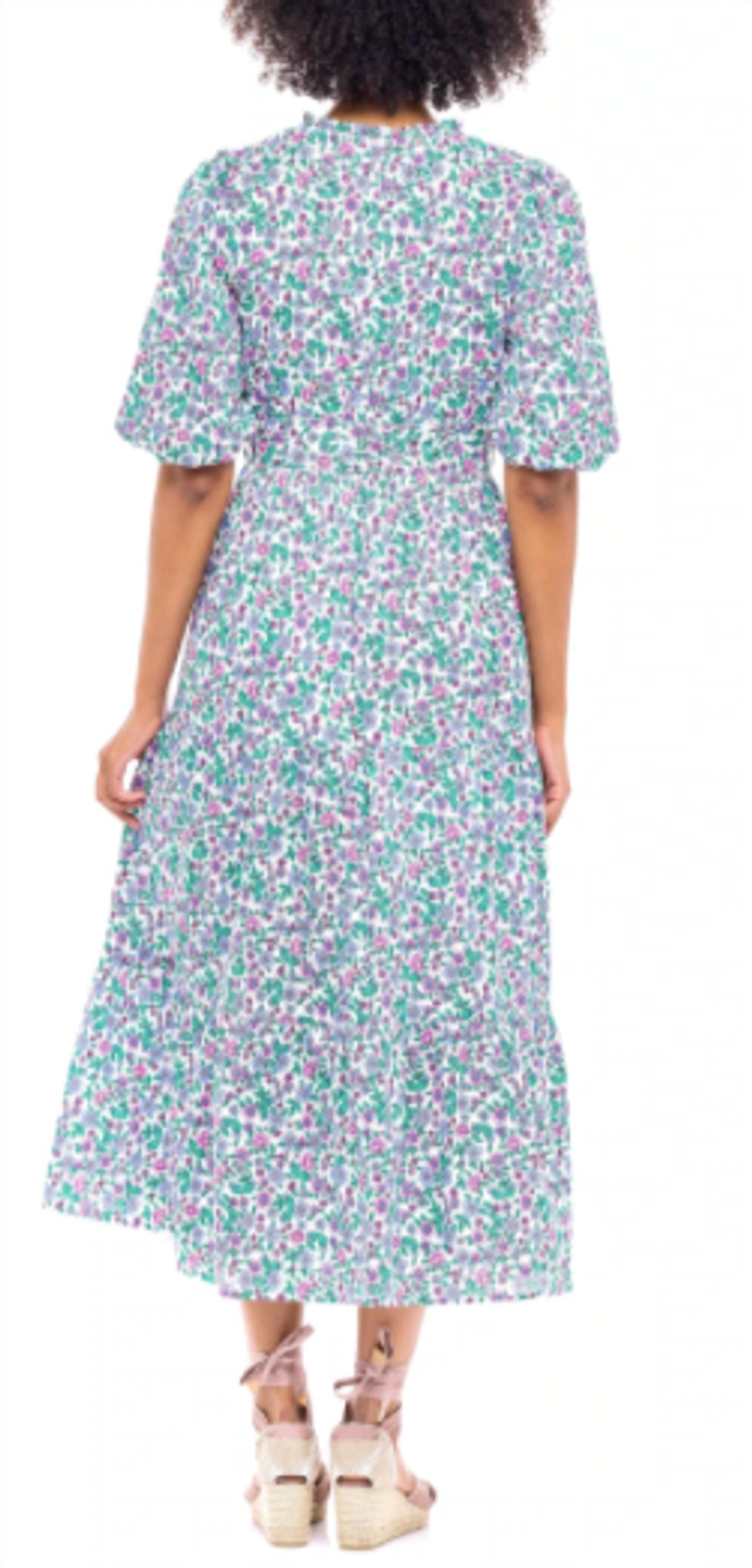 Очаровательное изделие с цветочным принтом, воплощающее деревенскую элегантность. Это белое платье миди А-силуэта выполнено из батиста из 100% органического хлопка, обеспечивающего мягкость и воздухопроницаемость. Платье имеет короткие рукава, круглый вырез горловины, боковые карманы и пояс с завязкой, а также удобную застежку-молнию сзади. Платье идеально подходит для создания универсальных образов и оснащено подкладкой для дополнительного комфорта.