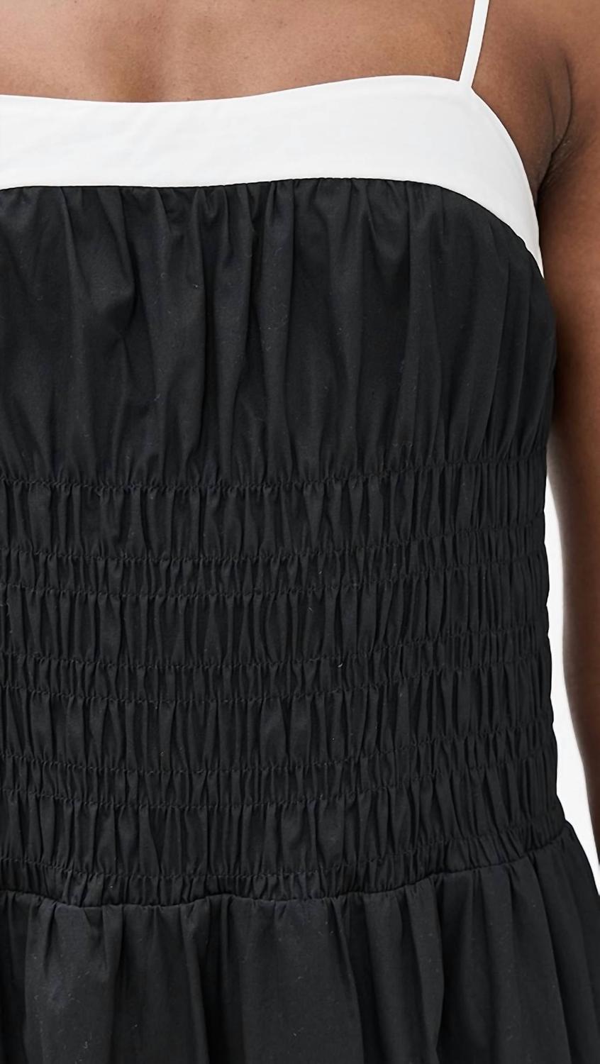 Просто добавьте шлепанцы или мюли, и все готово. Дополните свой гардероб платьем-миди MOON RIVER со сборками в классическом черном цвете, которое идеально подойдет для любого случая. Это эффектное изделие отличается тонкими бретельками и фактурным облегающим силуэтом, дополненным контрастной отделкой на квадратном вырезе. Платье изготовлено из легкого неэластичного поплина из 100% хлопка, имеет присборенную резинку на талии и частично полиэстеровую подкладку. Платье легко надевается и стирается вручную.