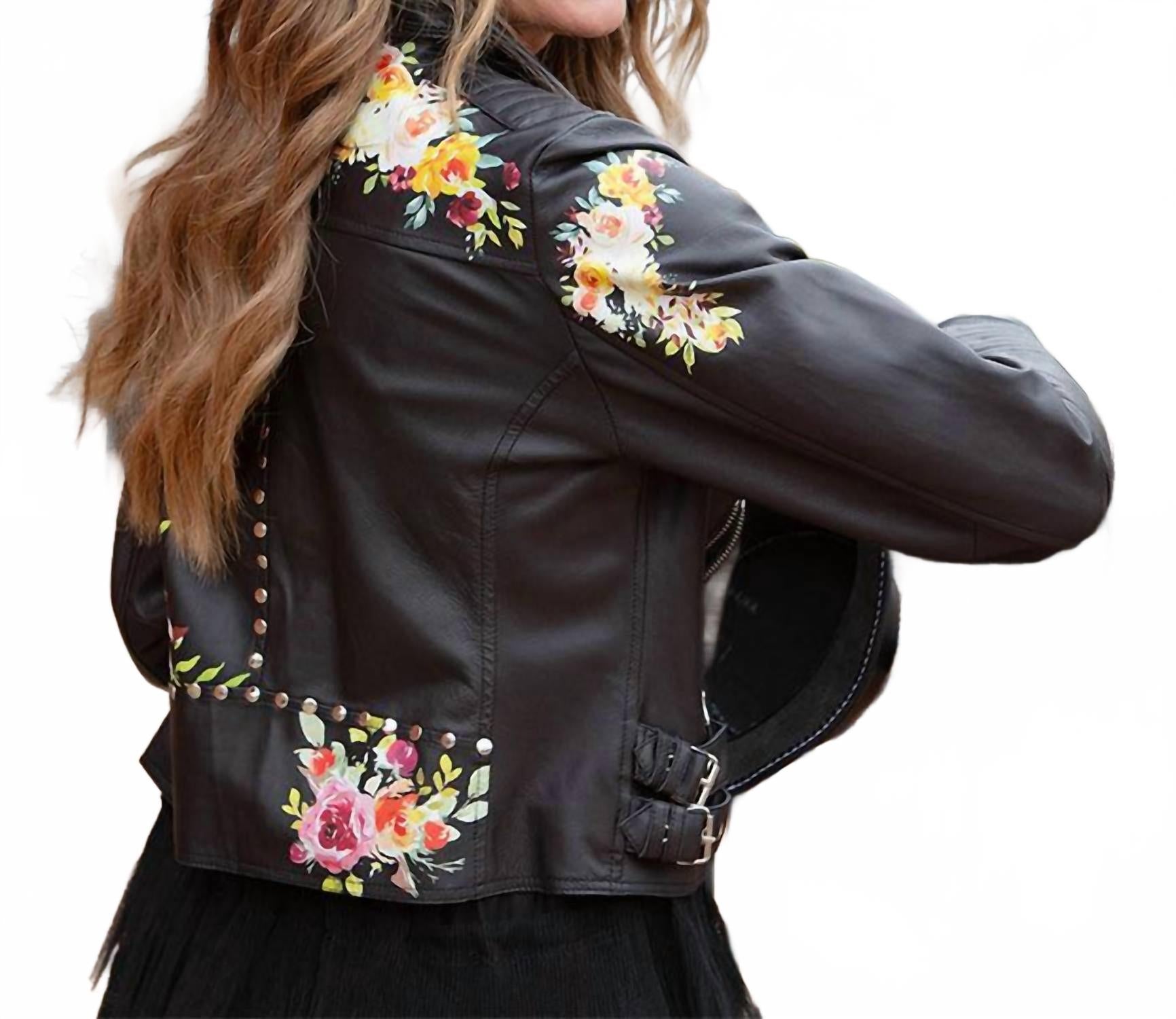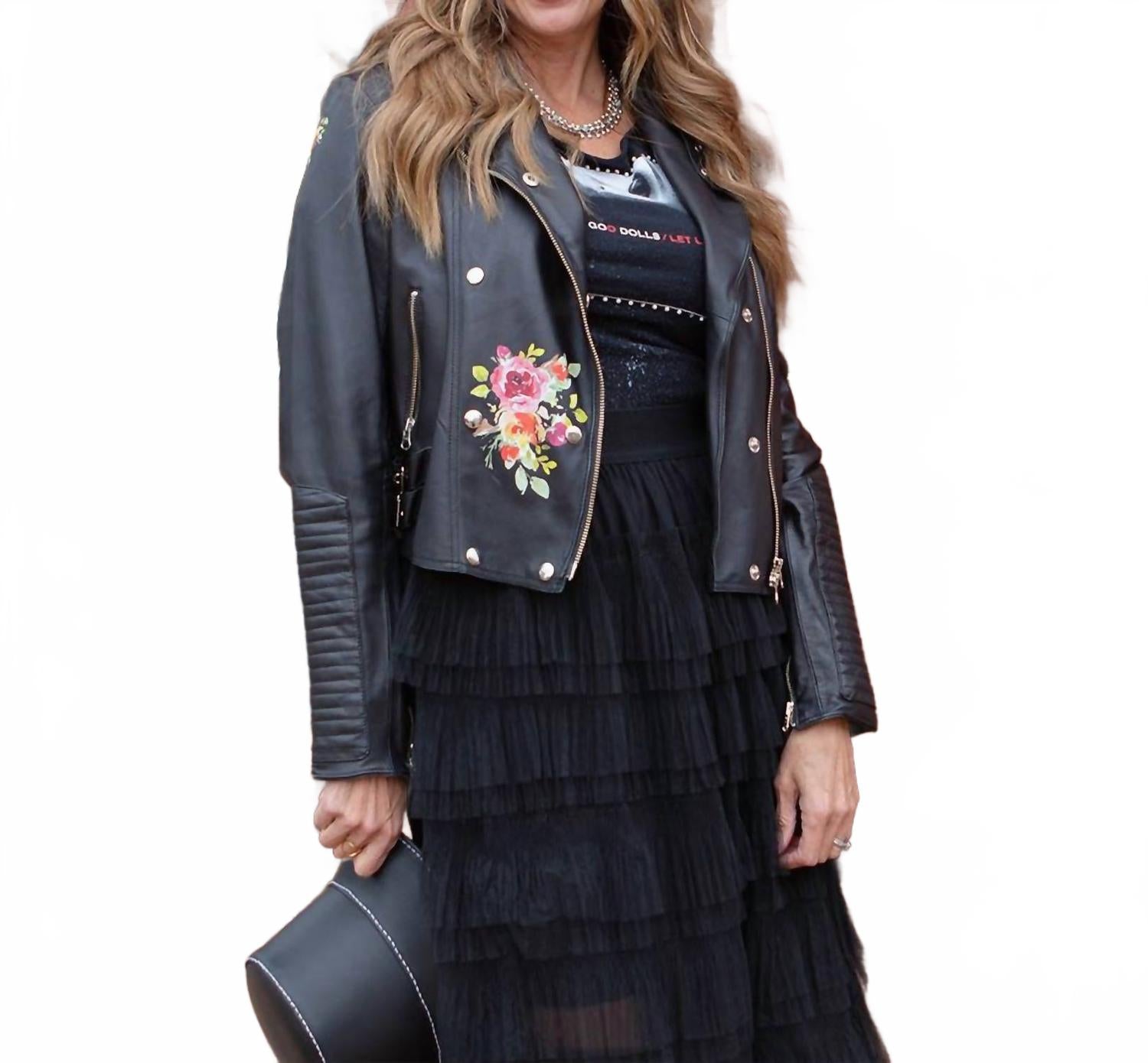 Такая кожаная куртка должна быть в гардеробе у каждого. Раскройте свой авантюрный дух с помощью Harley Leather Jacket от JACHS NEW YORK - идеального сочетания стиля и элегантности. Эта женская куртка черного цвета с длинными рукавами выполнена из высококачественной кожи и украшена цветочным принтом, отражающим актуальный дизайн в стиле гранж. Практичная застежка-молния и функциональные карманы делают ее идеальным вариантом для путешествий и осенних мероприятий. Уход: машинная стирка. На модели размер M.