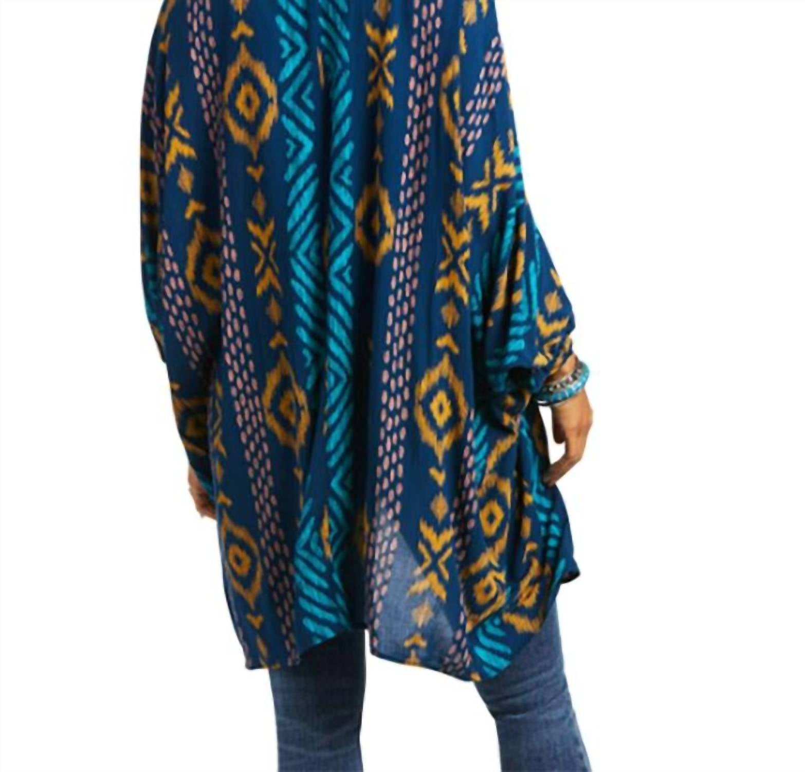 Дополните свой гардероб кимоно-накидкой Coachella от ARIAT - стильным кардиганом, который идеально подходит для любого случая. Эта стильная модель с рукавами три четверти, присборенной деталью по подолу и геометрическим узором. Изготовленная полностью из 100% вискозы, она обеспечивает комфортную и легкую посадку. Благодаря V-образному вырезу и удобному крою, надевать ее не составит труда. Можно стирать в стиральной машине и сушить в стиральной машине.