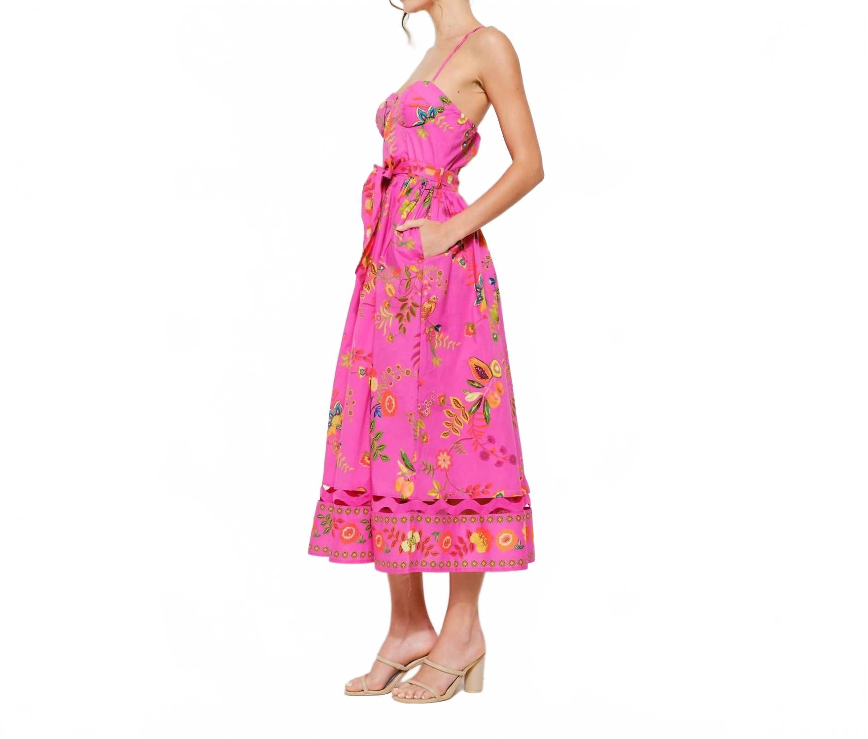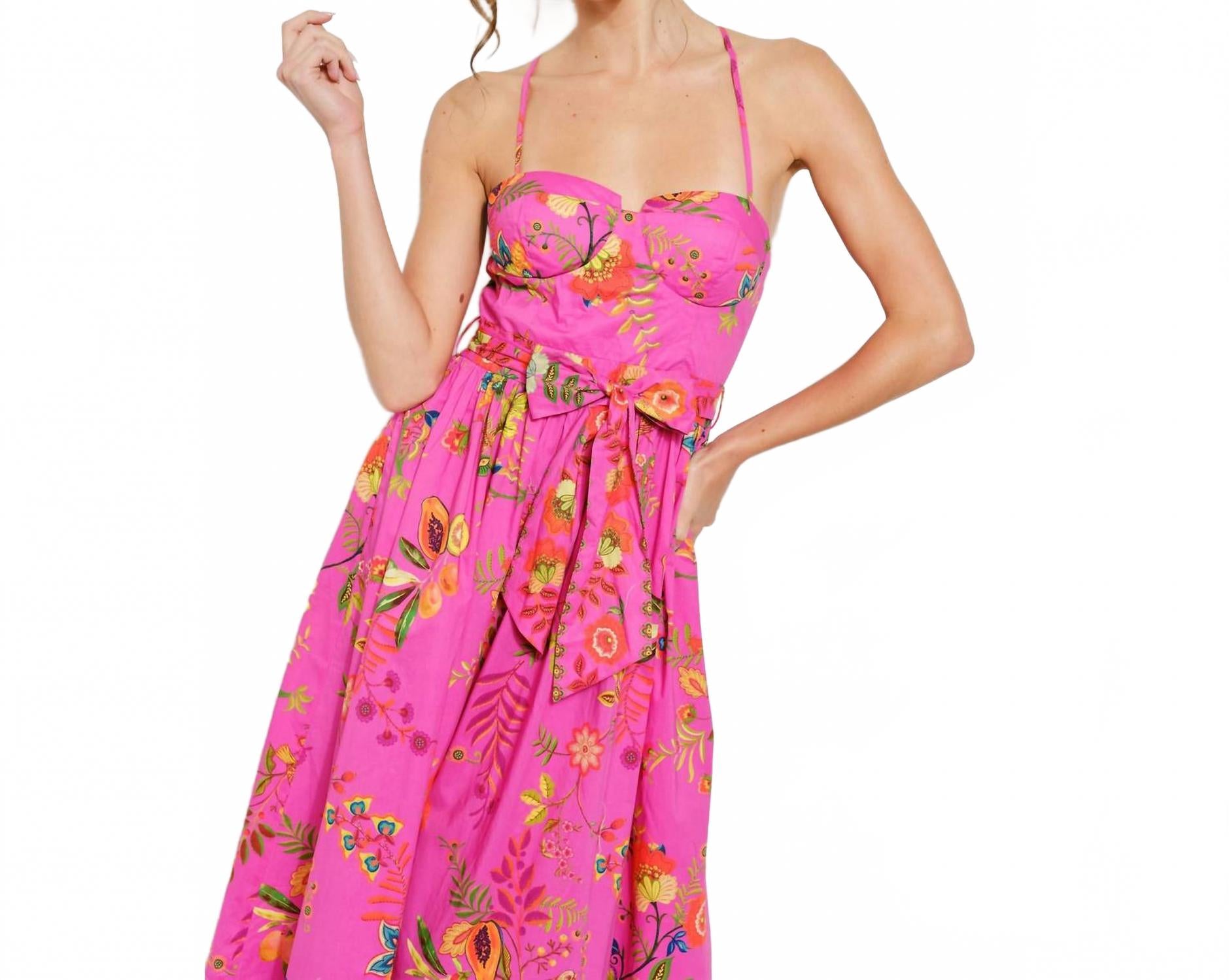 Цветочное платье-бюстье миди в ярко-розовом цвете INA
