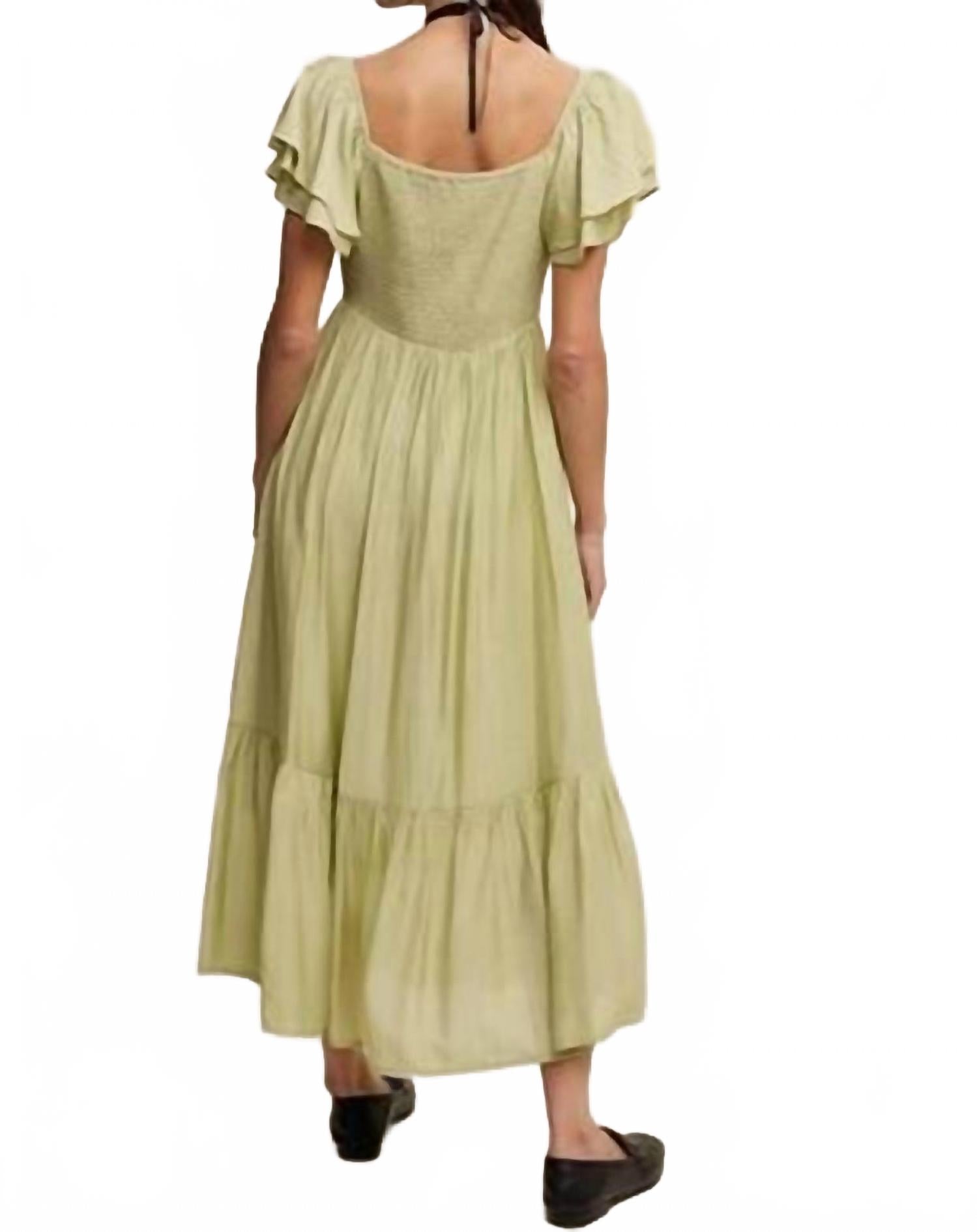 Estee Ruffled Short Sleeve Maxi In Avocado Listicle, Avocado 8 144₽