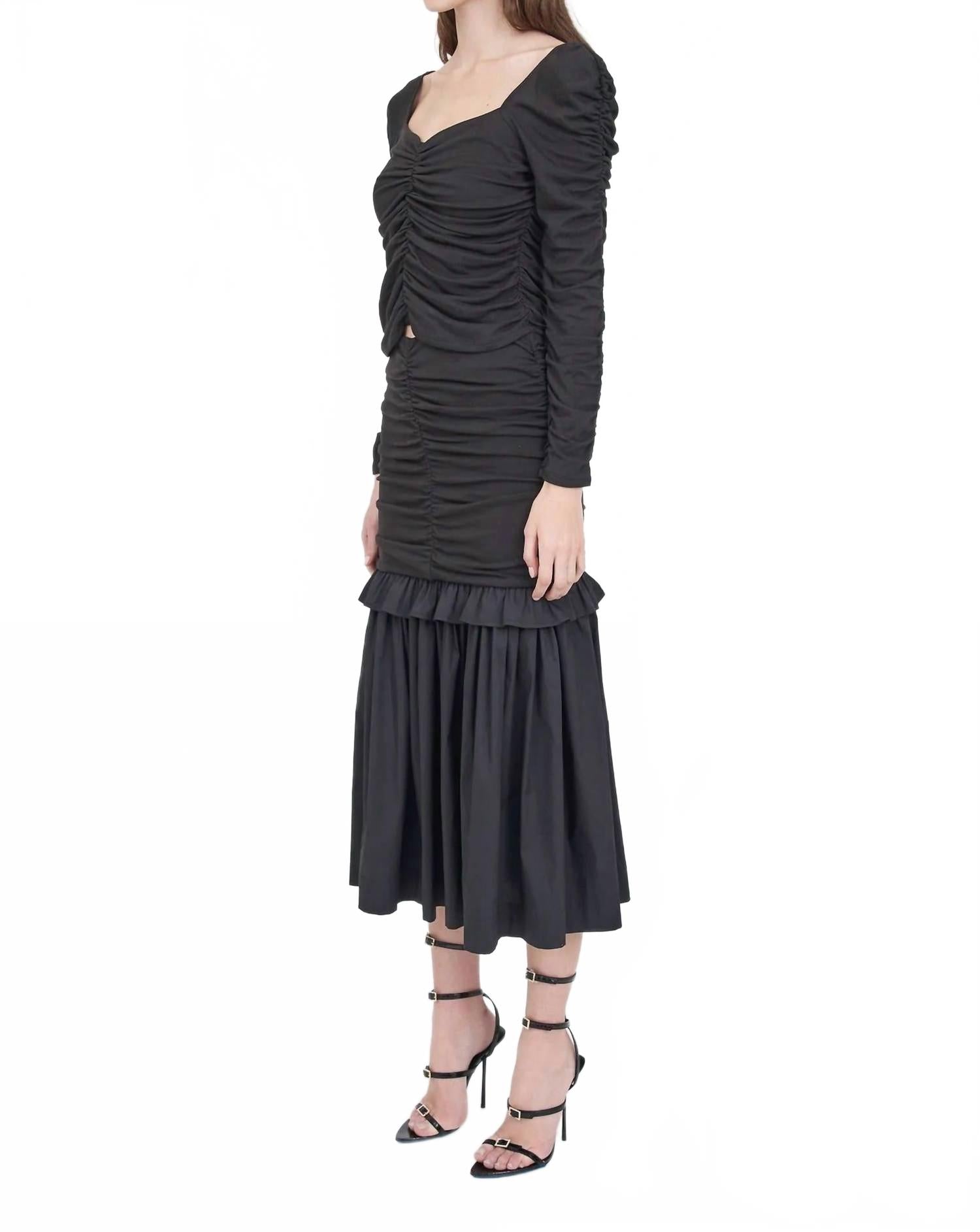 Идеальная посадка, милый дизайн, мягкая ткань. Вам понравится все в этой футболке с длинным рукавом. Подчеркните свой стиль с помощью топа Alden от Christy Lynn - шикарной модели в классическом цвете «нуар», которая идеально впишется в любой гардероб. Этот топ с длинными рукавами выполнен из структурированного хлопкового твила, что придает ему изысканную текстуру. Квадратный вырез с рюшами придает винтажный вид, идеально подходящий для званых ужинов или празднования Нового года. Уход: только химчистка.