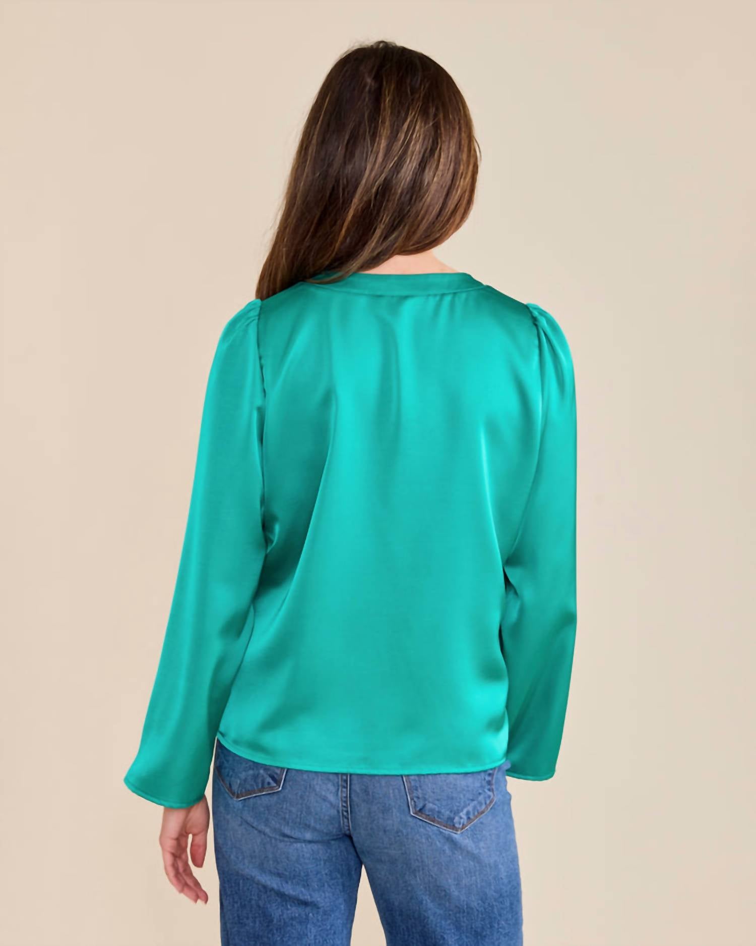 Универсальная блузка, которая подойдет как для работы, так и для ужина! Представляем топ Jolie от Sedge - яркое дополнение к вашему гардеробу в потрясающем бирюзово-голубом цвете Westminister. Эта однотонная женская блузка отличается длинными, слегка расклешенными рукавами и привлекательным V-образным вырезом с защипами на плечах. Изготовлена ​​из 97% полиэстера и 3% спандекса, имеет идеальную посадку по размеру и удобную застежку-липучку. Для оптимального ухода рекомендуем сдавать изделие в химчистку.
