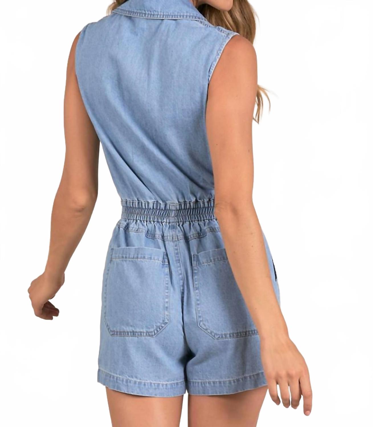 Джинсовый комбинезон с молнией спереди в синем цвете ELAN