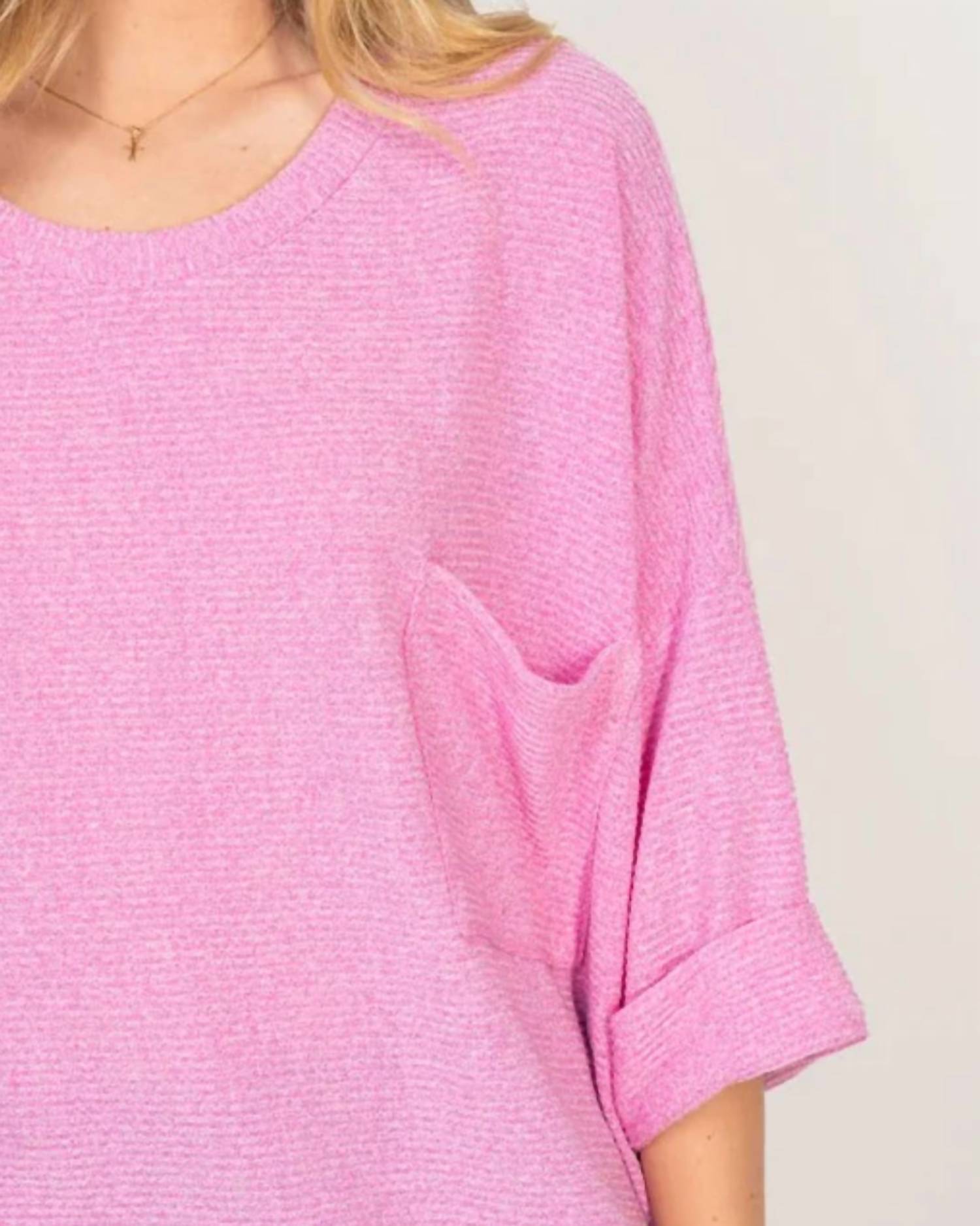 Топ свободного кроя в рубчик с карманом, розовый White Birch