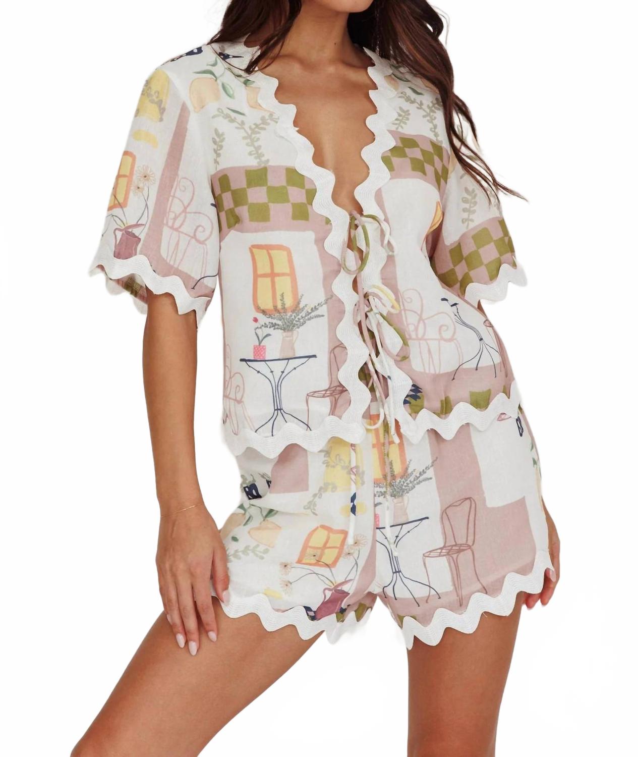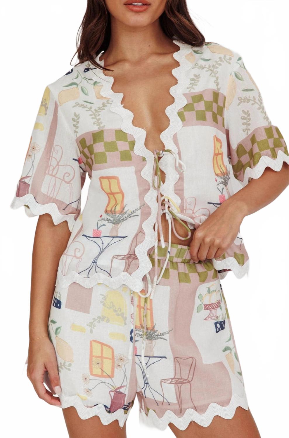 Блузка, которая никогда не выйдет из моды. Дополните свой летний гардероб топом Maelis Tie от One and Only Collective с игривым принтом White Multi Cafe. Эта шикарная блузка отличается модными рукавами до локтя, завязкой спереди и V-образным вырезом, украшенным волнистым узором Ric-Rac. Изготовленная из смеси хлопка (65% хлопка и 35% полиэстера), она сочетает в себе стиль и комфорт. Изготовленная из Китая, блузка рекомендуется деликатная ручная стирка и сушка на веревке для сохранения яркости рисунка.