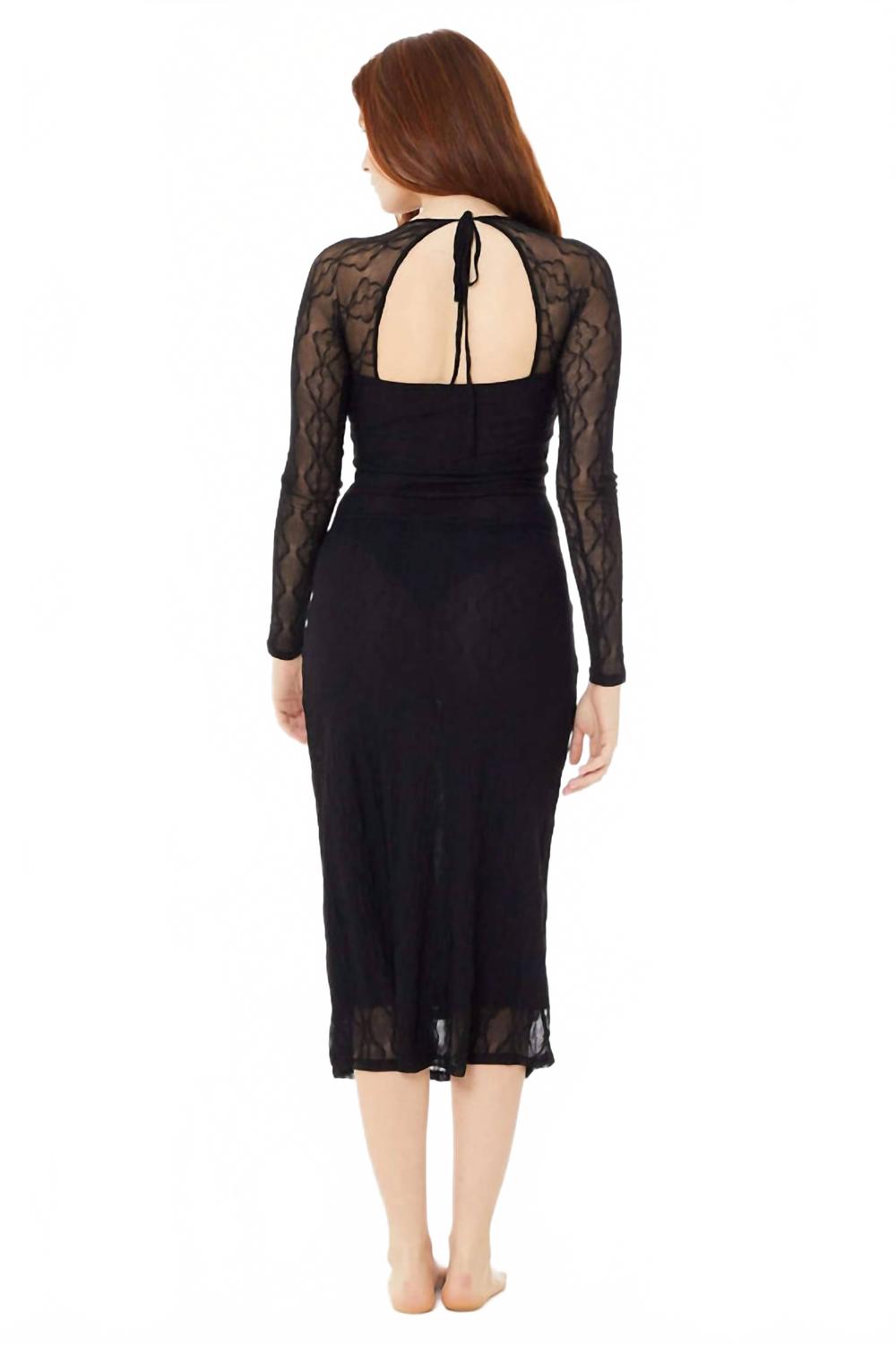 Платье миди настолько универсально, что ваши варианты его ношения безграничны. Оцените элегантность и изысканность платья Mariposa с длинными рукавами от Second Skin by RD Style, созданного для вашего летнего гардероба. Это облегающее платье миди классического черного цвета с фактурным узором и длинными рукавами создает стильный образ. Универсальная застежка-липучка и классический круглый вырез горловины воплощают непринужденную изысканность. Уход за платьем: ручная стирка и сушка в разложенном виде.