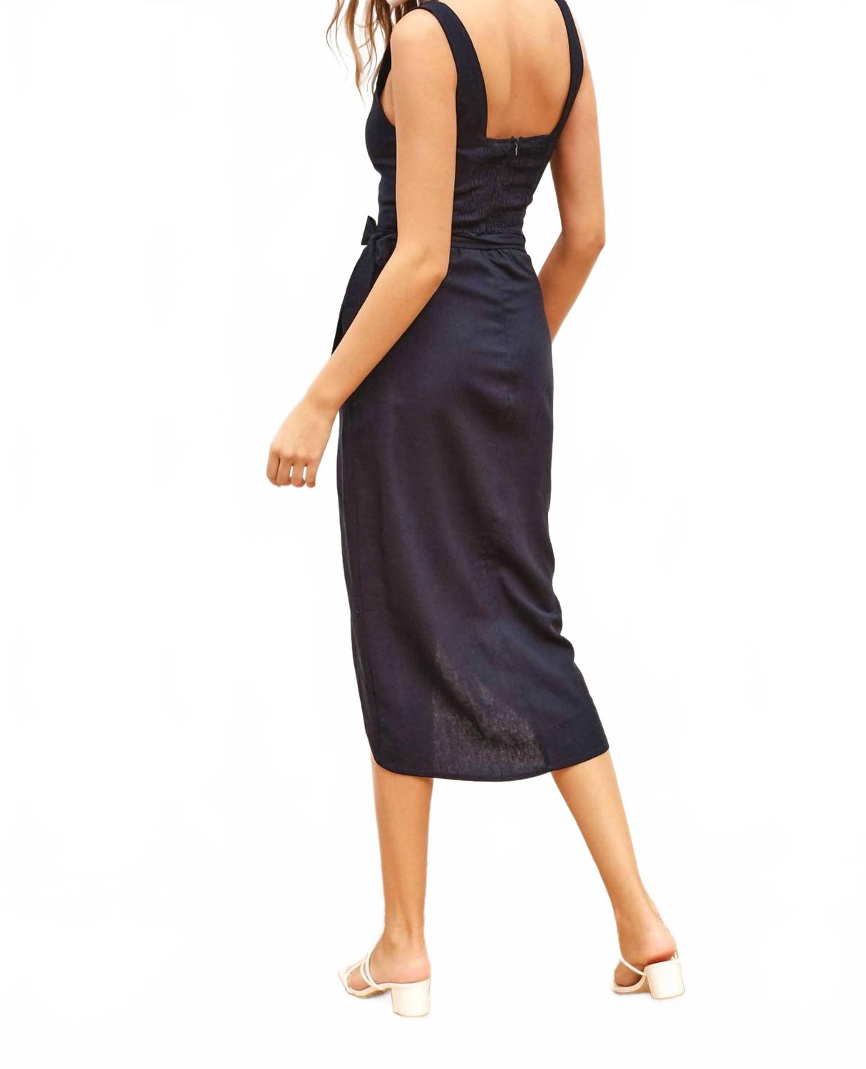 Платье миди настолько универсально, что варианты его ношения безграничны. Платье Heaven Sent от DRESS FORUM - шикарный выбор для любого званого ужина или празднования Дня благодарения. Это темно-синее платье миди без рукавов из комфортной хлопковой ткани отличается минималистичным однотонным узором и выгодно подчеркивает фигуру квадратным вырезом. Силуэт платья с запахом подчеркнут тюльпанообразным подолом, что придаст элегантности вашему образу. Платье застегивается на молнию для удобства надевания.
