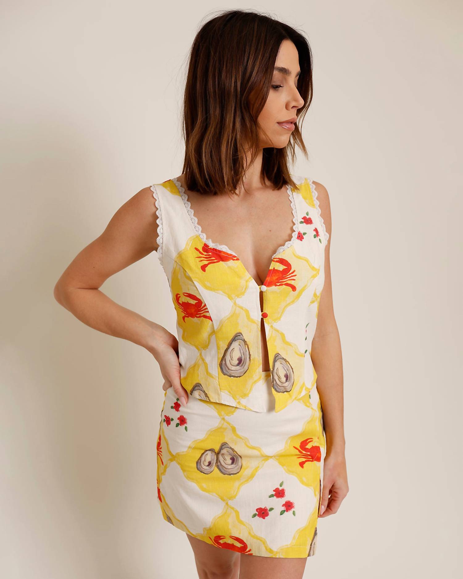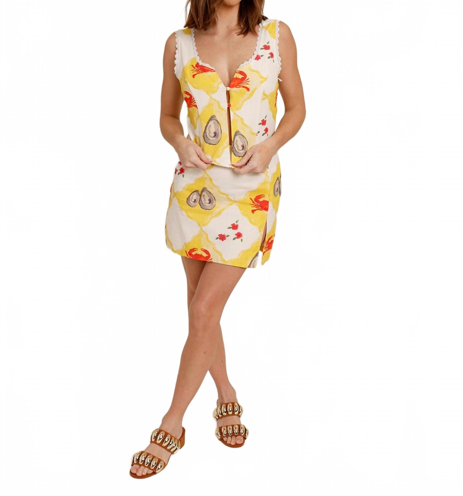 Украсьте свой весенний и праздничный гардероб топом Clam Bake от Bailey Rose. Это ярко-желтая модель, которая добавит игривости любому образу. Этот топ без рукавов с летним узором, кружевной отделкой и стильным завязкой сзади. Изготовленный из 60% хлопка и 40% полиэстера, он застегивается на две пуговицы сзади для надежной посадки. Ухаживайте за ним бережно: стирайте вручную, сушите на открытом воздухе и гладьте при низкой температуре при необходимости.