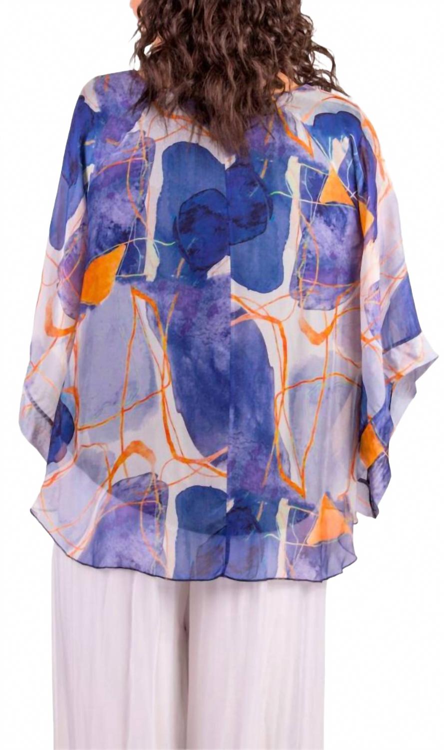 Колетта Абстракт шелковый топ в темно-синем GIGI MODA