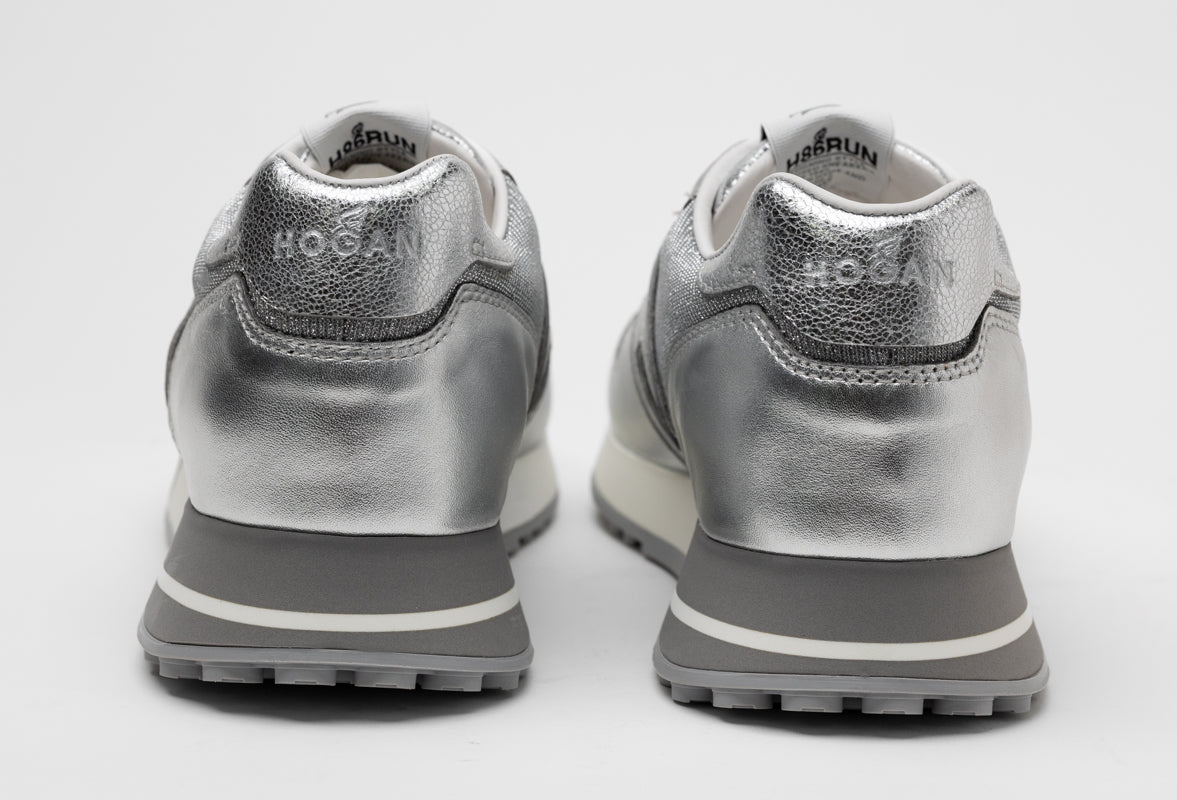 Hogan H383 Кожаные кроссовки, белый/серебряный
