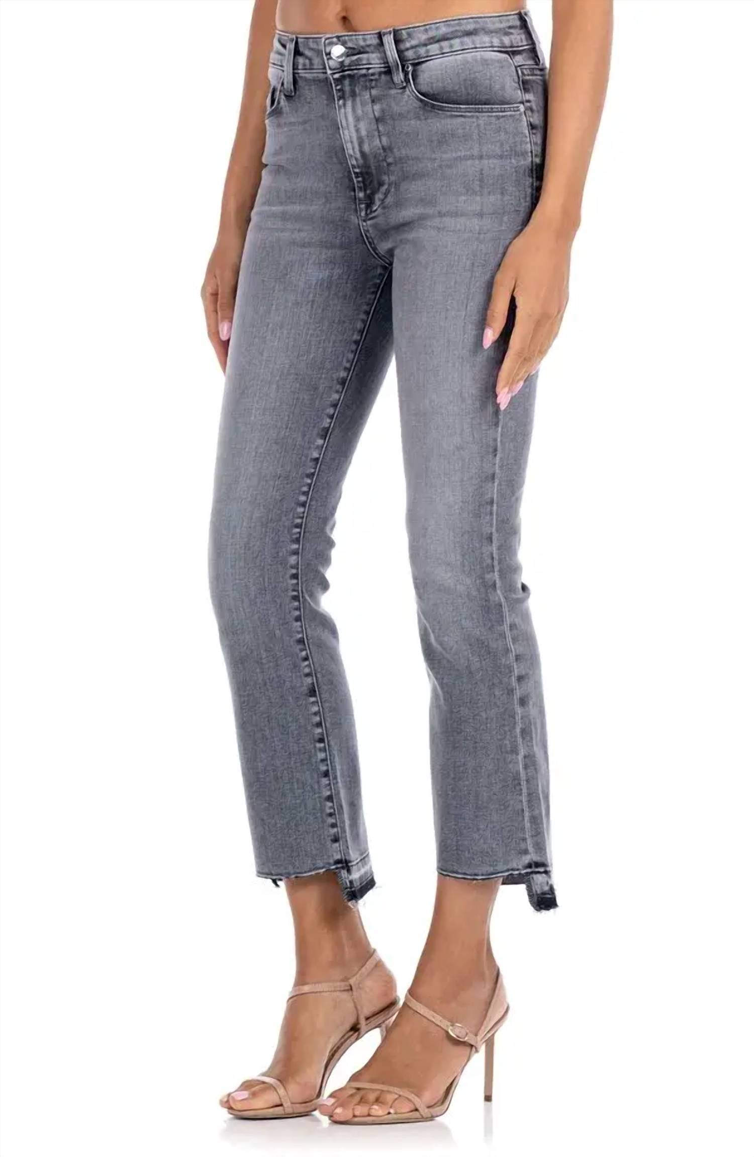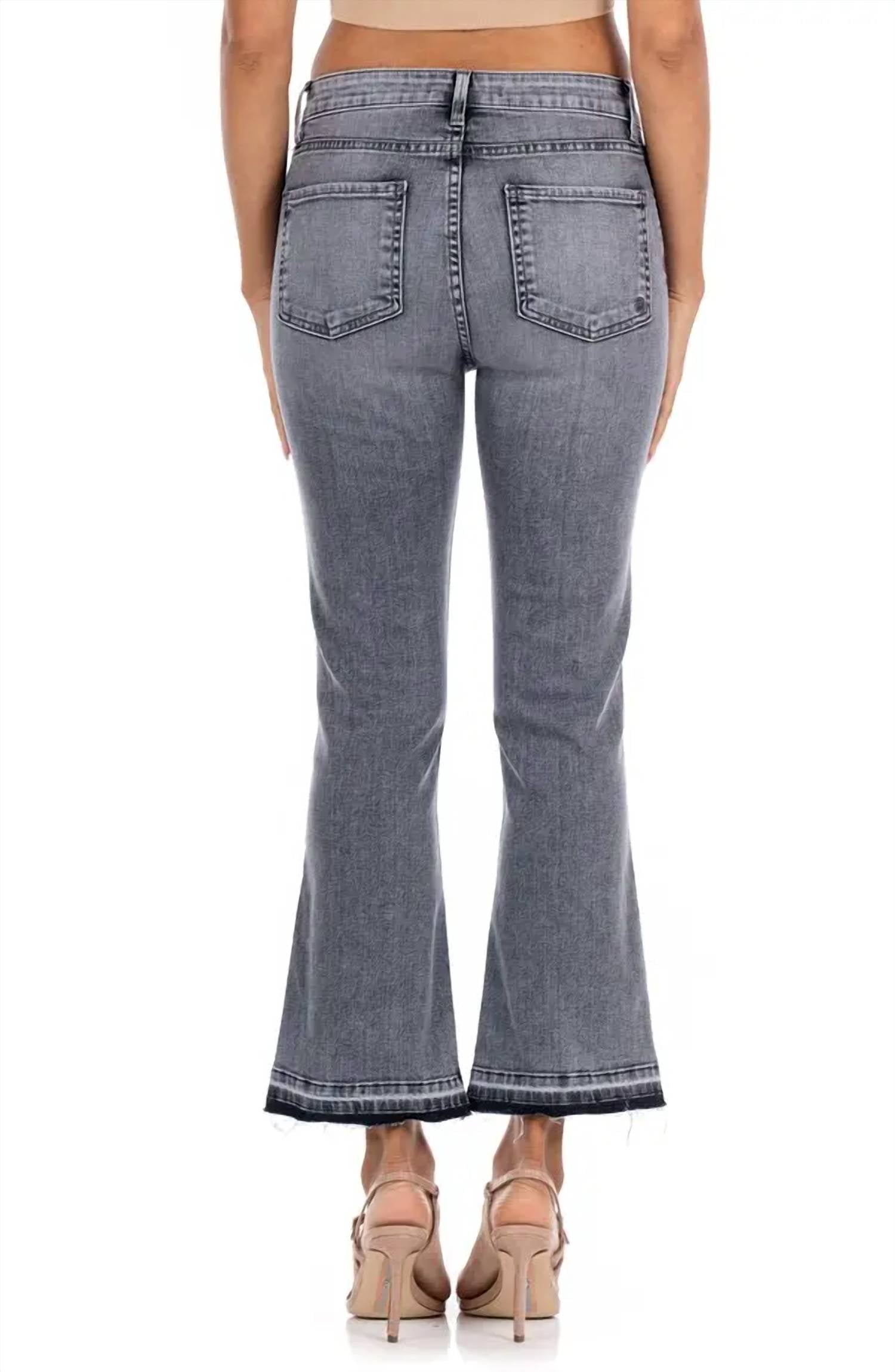 Стильное дополнение к вашему осеннему гардеробу. Джинсы с высокой талией и расклешенным кроем, с уникальным необработанным подолом и однотонным винтажным серым цветом. Состав: 92% хлопка, 6% эластомультиэстер и 2% эластан. Комфортная эластичность, застежка на пуговицы. Длина внутреннего шва 26 дюймов. Сделано в США. Можно стирать в стиральной машине и сушить в стиральной машине. Идеально подходит для повседневной носки или путешествий.
