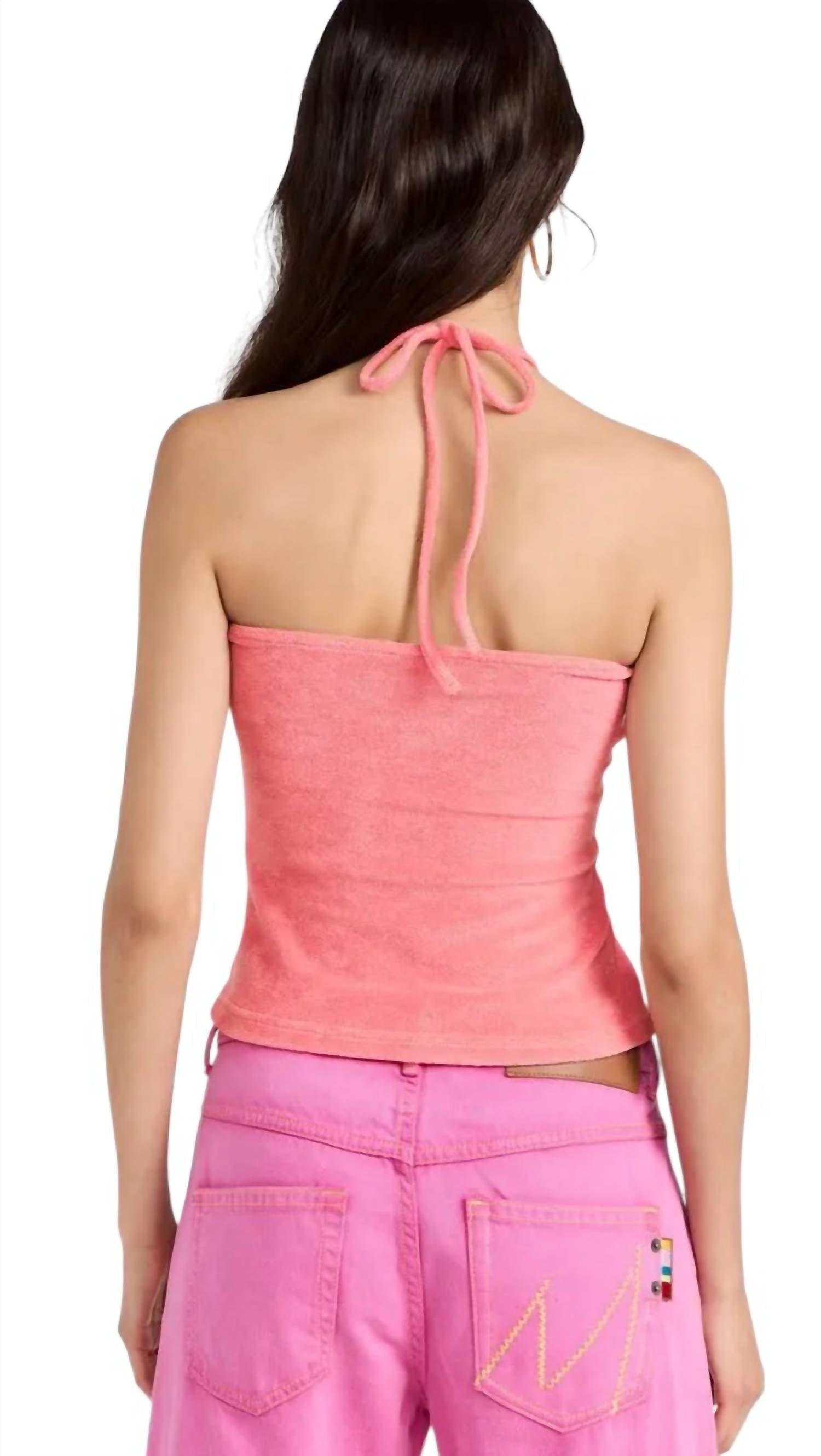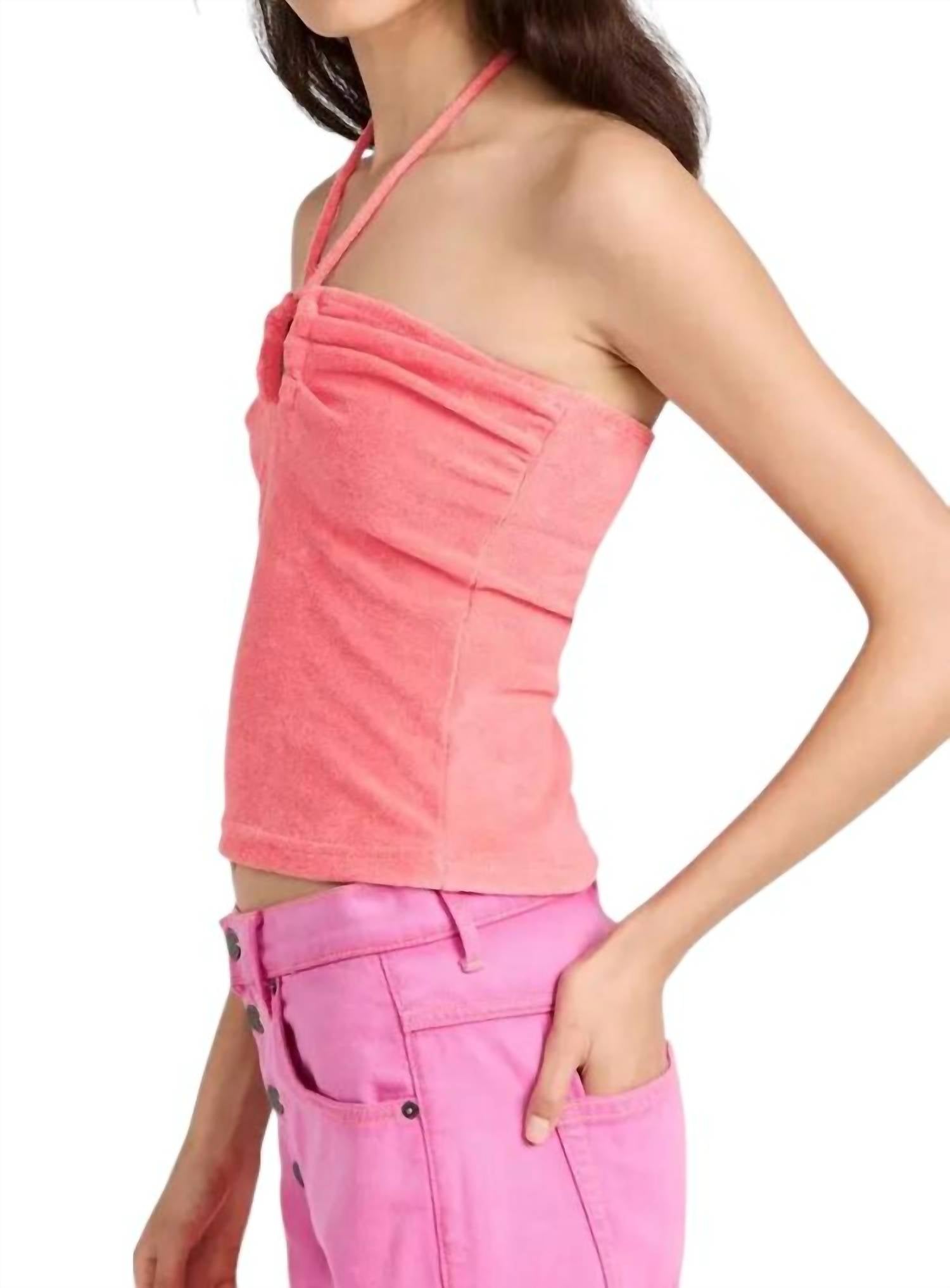 Представляем топ Jipi с халтер-халтером от Baum und Pferdgarten, выполненный на тонких бретельках для непринужденного летнего образа. Этот укороченный топ средней длины из мягкой махровой ткани состоит из 75% хлопка, 20% полиэстера и 5% модала. Благодаря универсальной завязке его можно носить как топ-трубу или как халтер. Этот однотонный топ, доступный в розовом цвете, идеально подходит для стильного отпуска.