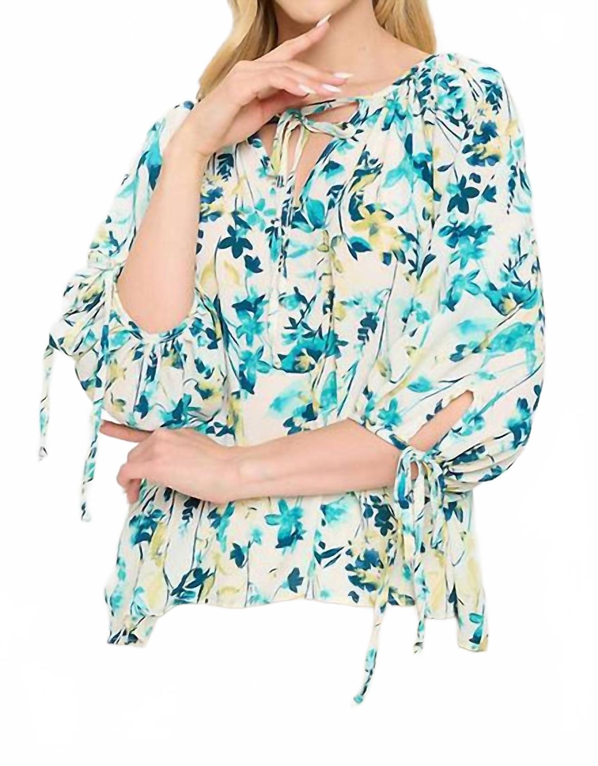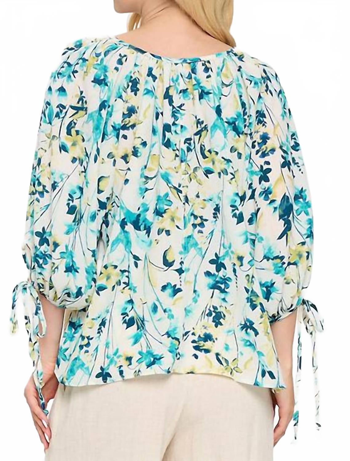 Цветочная блузка в бело-зеленой гамме Reneec.
