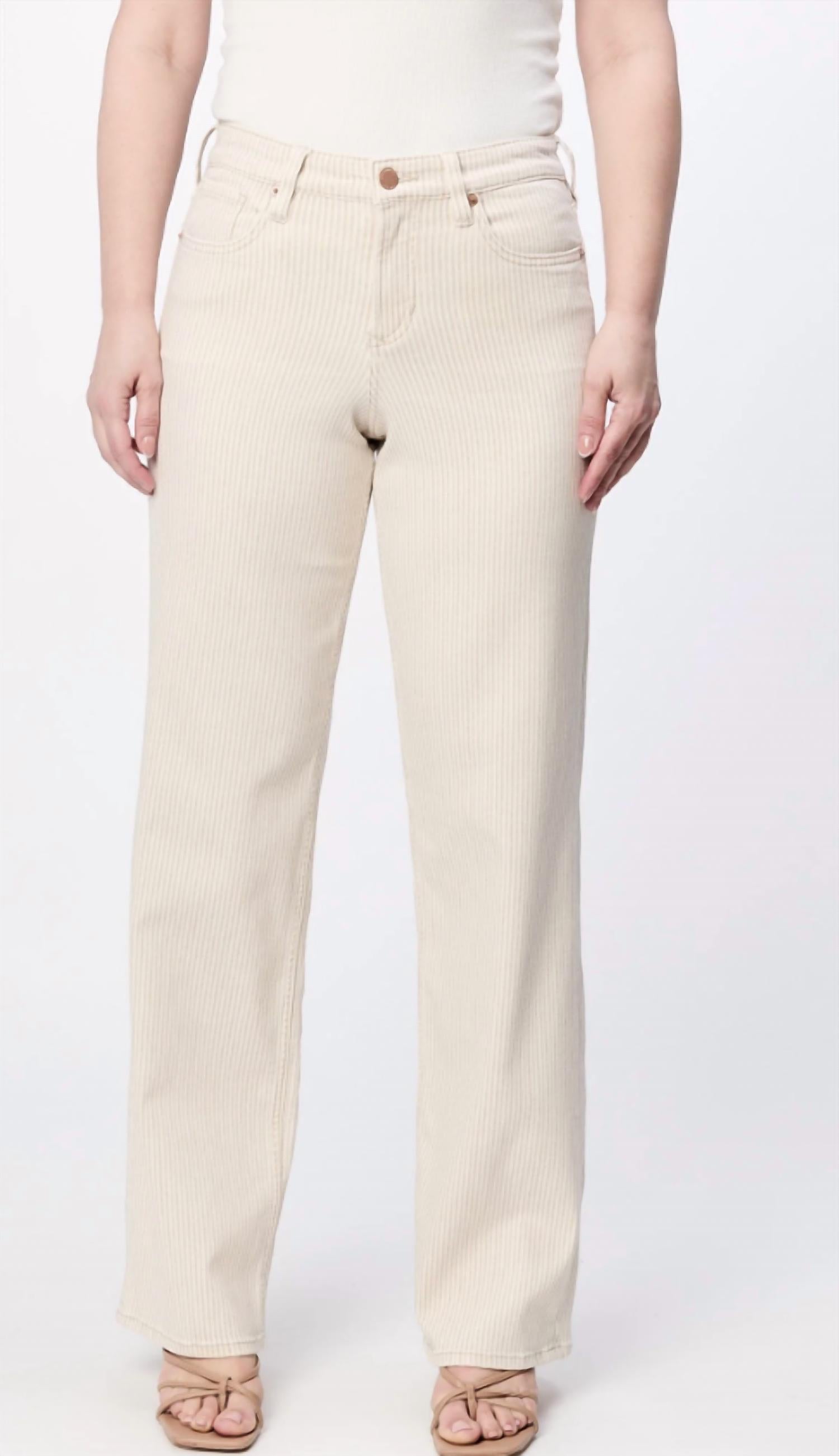 Эти классические джинсы прямого кроя идеально сидят и подходят практически ко всему. Окунитесь в непринужденный стиль с нашими брюками Taylor Pant в песочной полоске, которые отличаются выгодной средней посадкой и четким нижним краем, создающим элегантный силуэт. Изготовленные из высококачественных материалов, эти универсальные наряды обеспечивают непревзойденный комфорт и адаптивность, что делает их неотъемлемой частью женской моды и идеальным выбором удобной одежды для женщин на все случаи жизни.