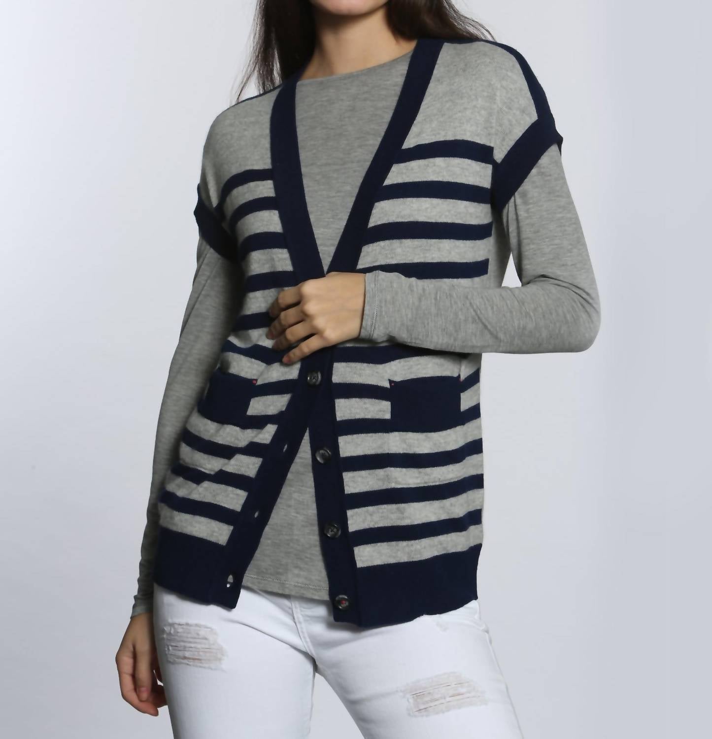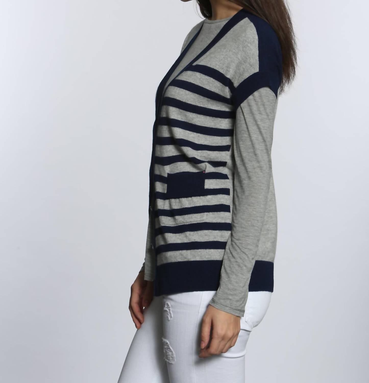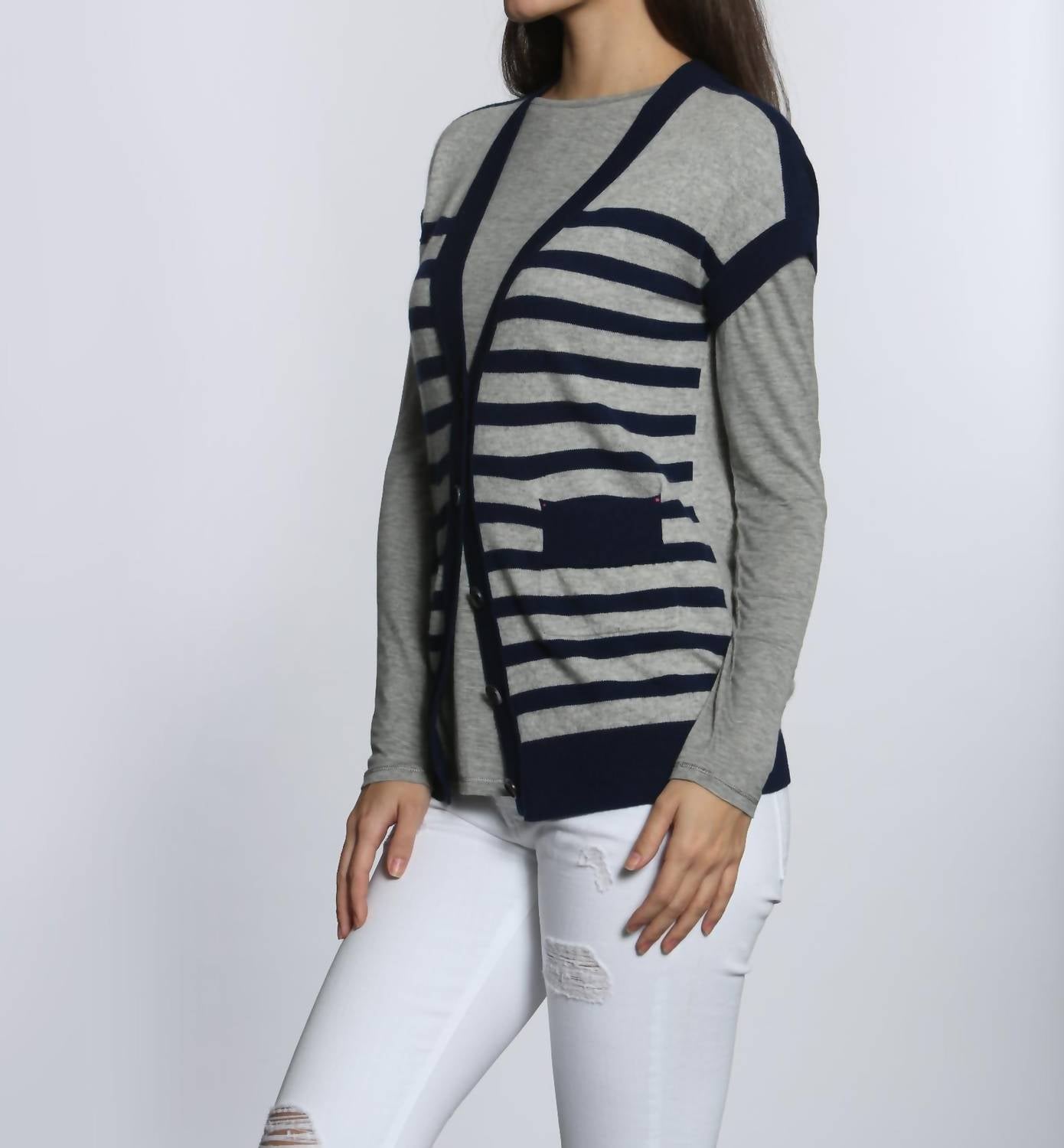 Женский роскошный полосатый кардиган в серо-синей гамме LABEL+thread