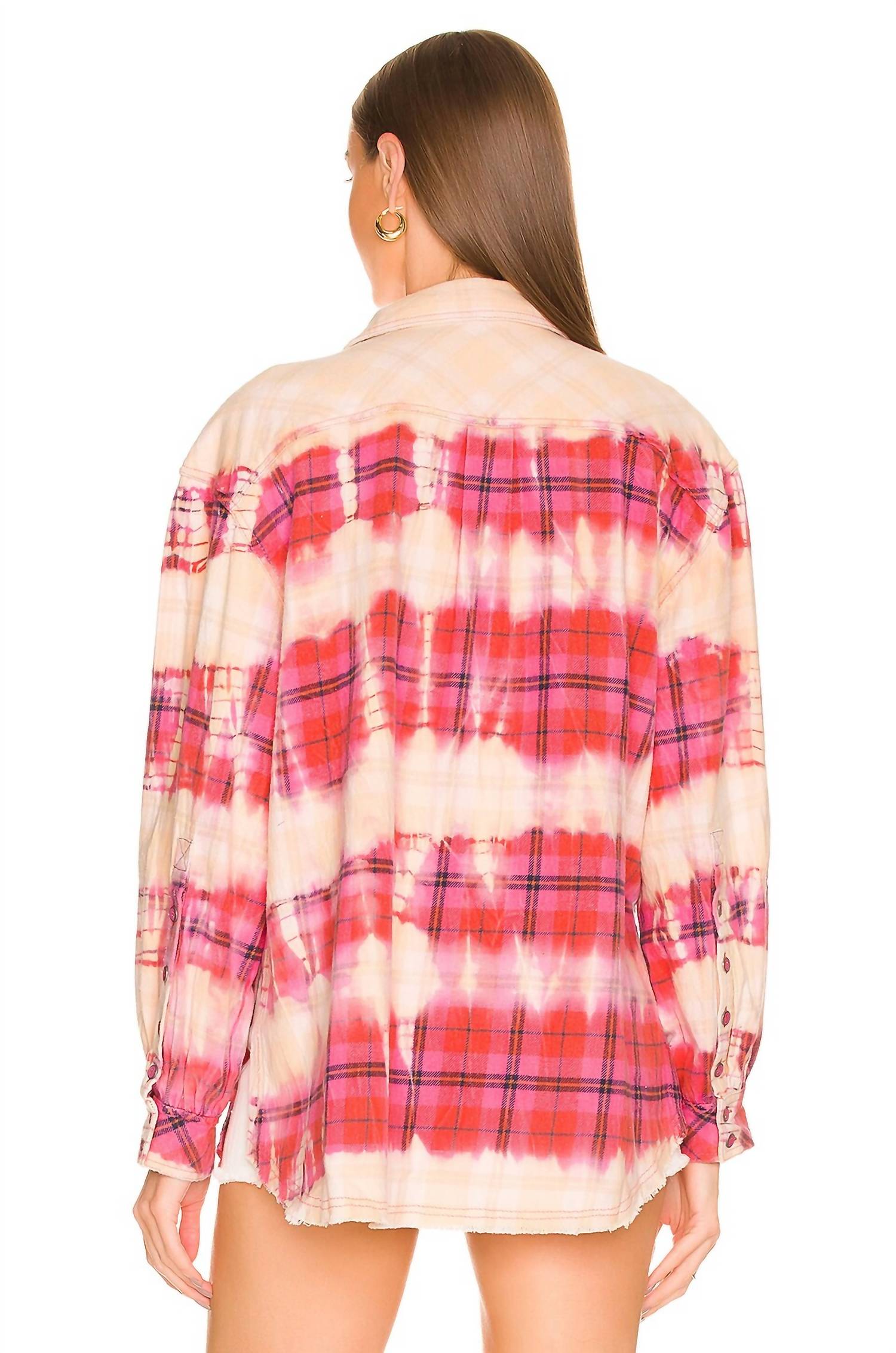 Стильный выбор для вашего дорожного гардероба в цвете Pink Rose. Рубашка на пуговицах с длинными рукавами, классическим воротником и игривым клетчатым принтом тай-дай создает ощущение повседневности. Составные детали, такие как накладной карман на груди и необработанный нижний край, делают ее практичной и практичной. Длина изделия - 30 дюймов. Застежка на пуговицы. Машинная стирка в холодной воде. Размер S: обхват груди - 47 дюймов, длина рукава - 22 дюйма.