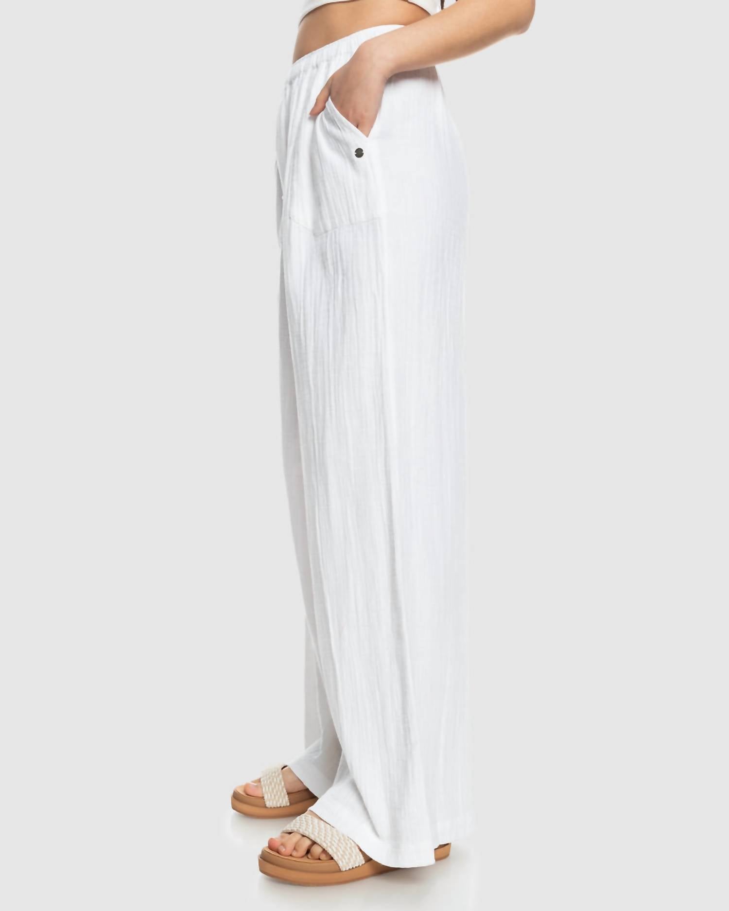 Представляем брюки What A Vibe от ROXY, воплощающие минималистичный стиль в спокойном белоснежном оттенке. Эти брюки свободного кроя с широкими штанинами изготовлены из 100% органического хлопка в двухслойной ткани средней плотности, обеспечивающей воздухопроницаемость и комфорт. Эластичный пояс, фиксированная застежка и накладные карманы спереди обеспечивают практичность. Эти брюки идеально подойдут для летнего отпуска или Дня благодарения, они станут универсальным дополнением к любому гардеробу.
