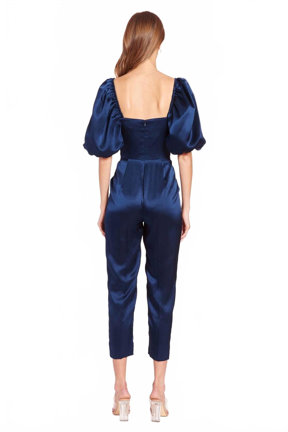 Надевайте и вперед! Подчеркните свой стиль с комбинезоном Santucci от Amanda Uprichard - потрясающей вещью, созданной для элегантности и очарования. Этот синий шелковый комбинезон с рукавами-буфами и привлекательным вырезом в форме сердечка с рюшами создаст изысканный образ, идеально подходящий для званых ужинов. Прямой крой и потайная молния по центру спины сочетают в себе комфорт и изысканность. Состав: 100% шелк, подкладка: 100% полиэстер. Уход: только химчистка. Рост модели: 178 см, размер S.