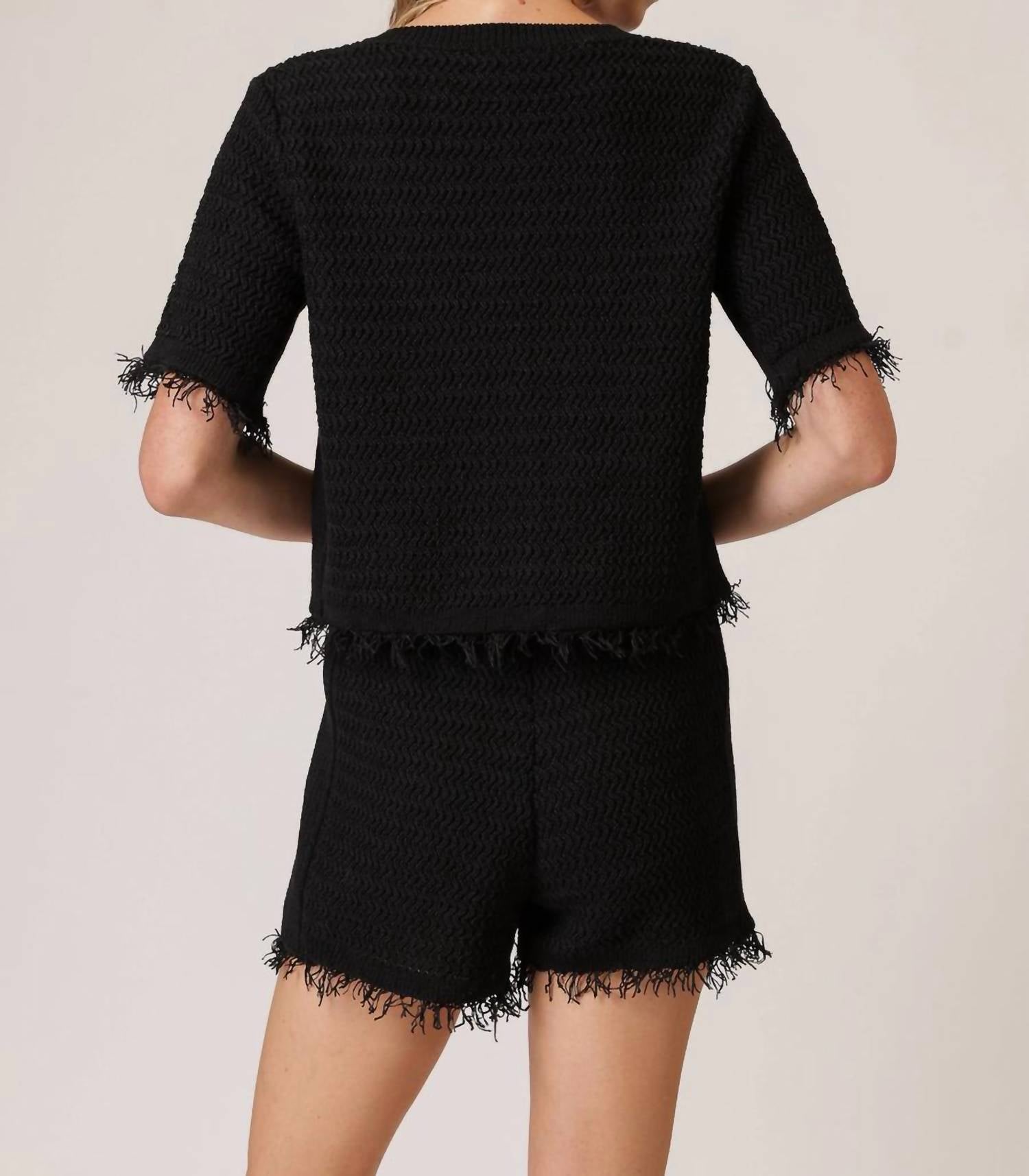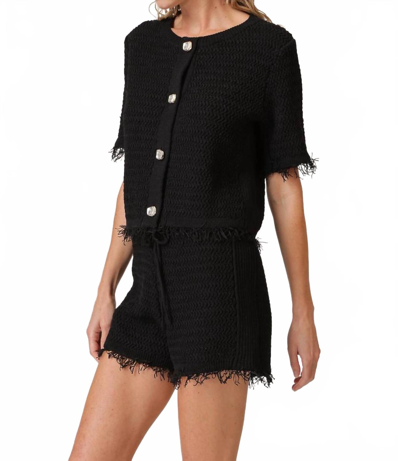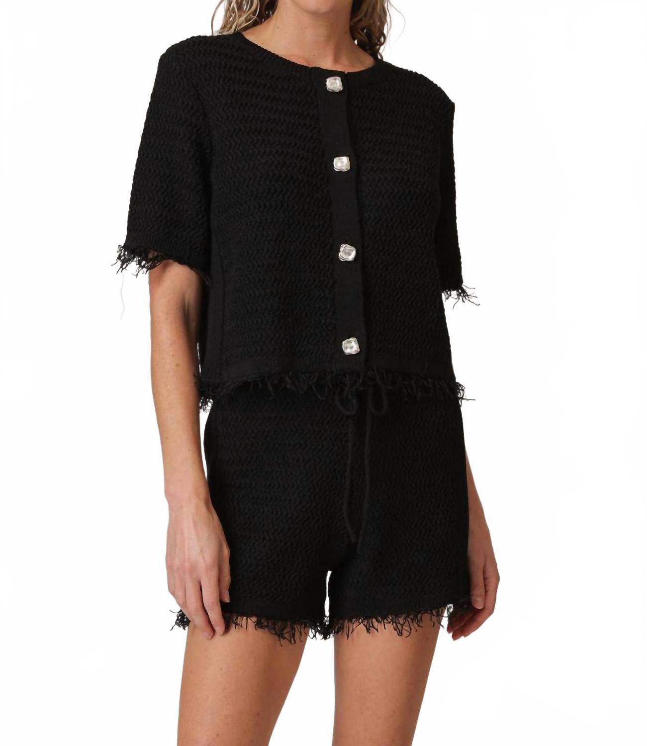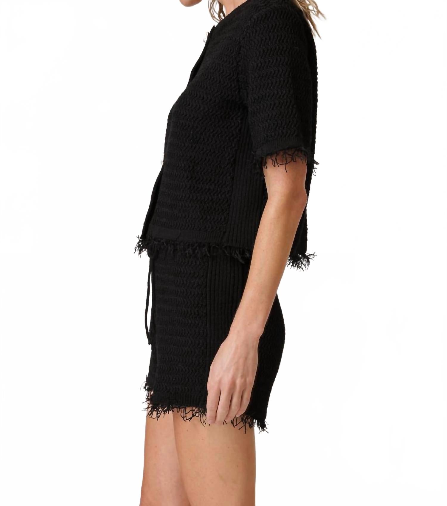 Накиньте этот очаровательный кардиган поверх любой майки или топа. Представляем свитер Sancia Button Down от Line and Dot - шикарную вещь в классическом черном цвете, которая добавит сдержанной элегантности любому гардеробу. Этот кардиган из трикотажной ткани средней плотности с короткими рукавами и бахромой по подолу для дополнительной элегантности. Застежка на пуговицы и круглый вырез обеспечивают плотную посадку. Уход за этим роскошным изделием возможен только в химчистке. На модели размер S.