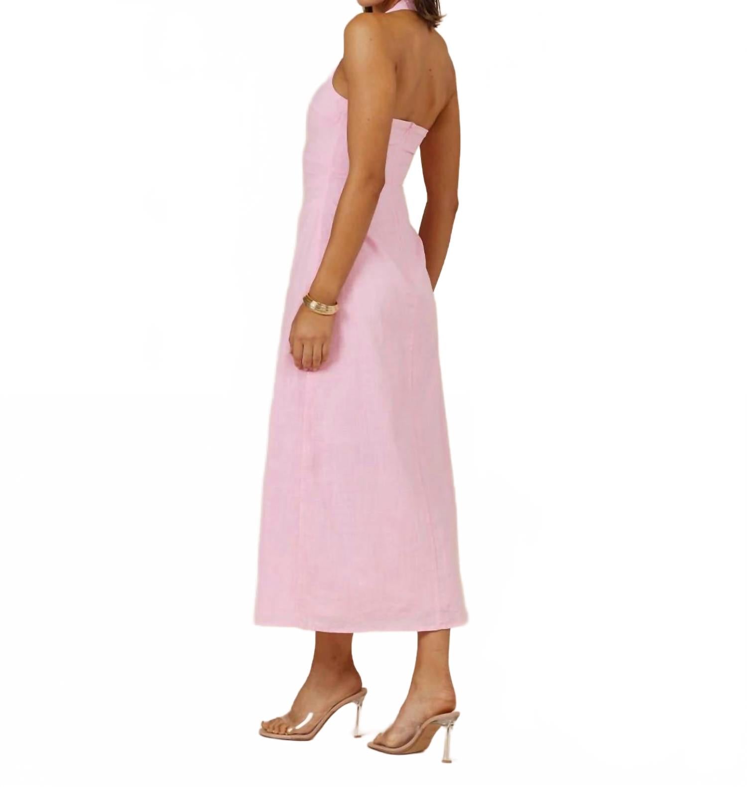 Кто не любит хорошее макси-платье? Это платье вы будете носить каждый сезон. Представляем длинное миди-платье Saphira от Seven Wonders - идеальный выбор для любого летнего случая. Это элегантное розовое платье без рукавов с асимметричным вырезом халтер создает стильный минималистичный образ. Платье изготовлено из 100% хлопка, имеет удобный облегающий силуэт и длину миди, идеально подходящую для годовщин или Дня святого Валентина. Застежка: потайная молния по центру спинки. Уход: машинная стирка.