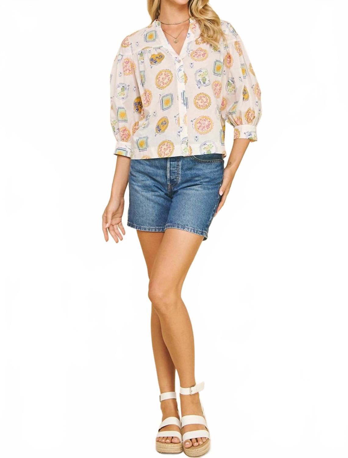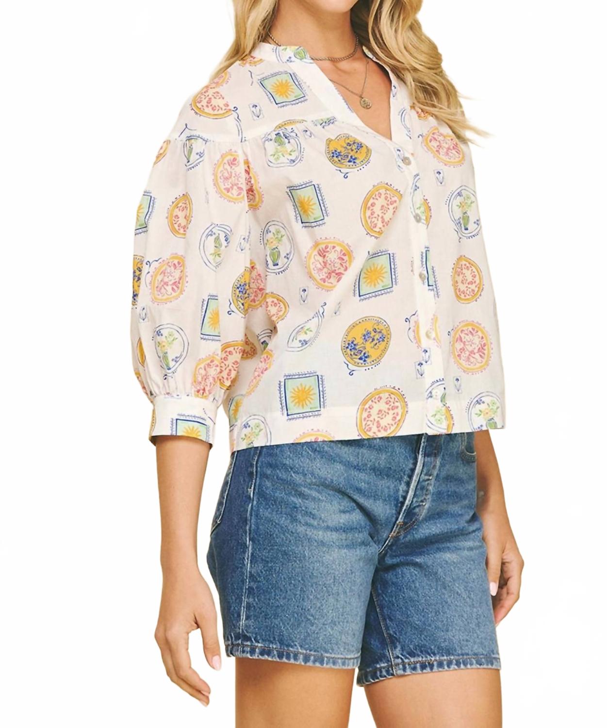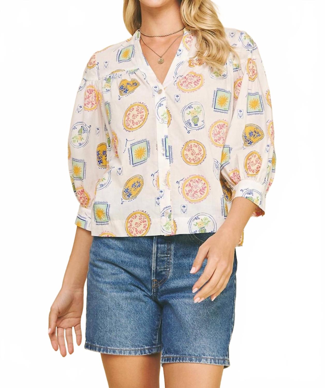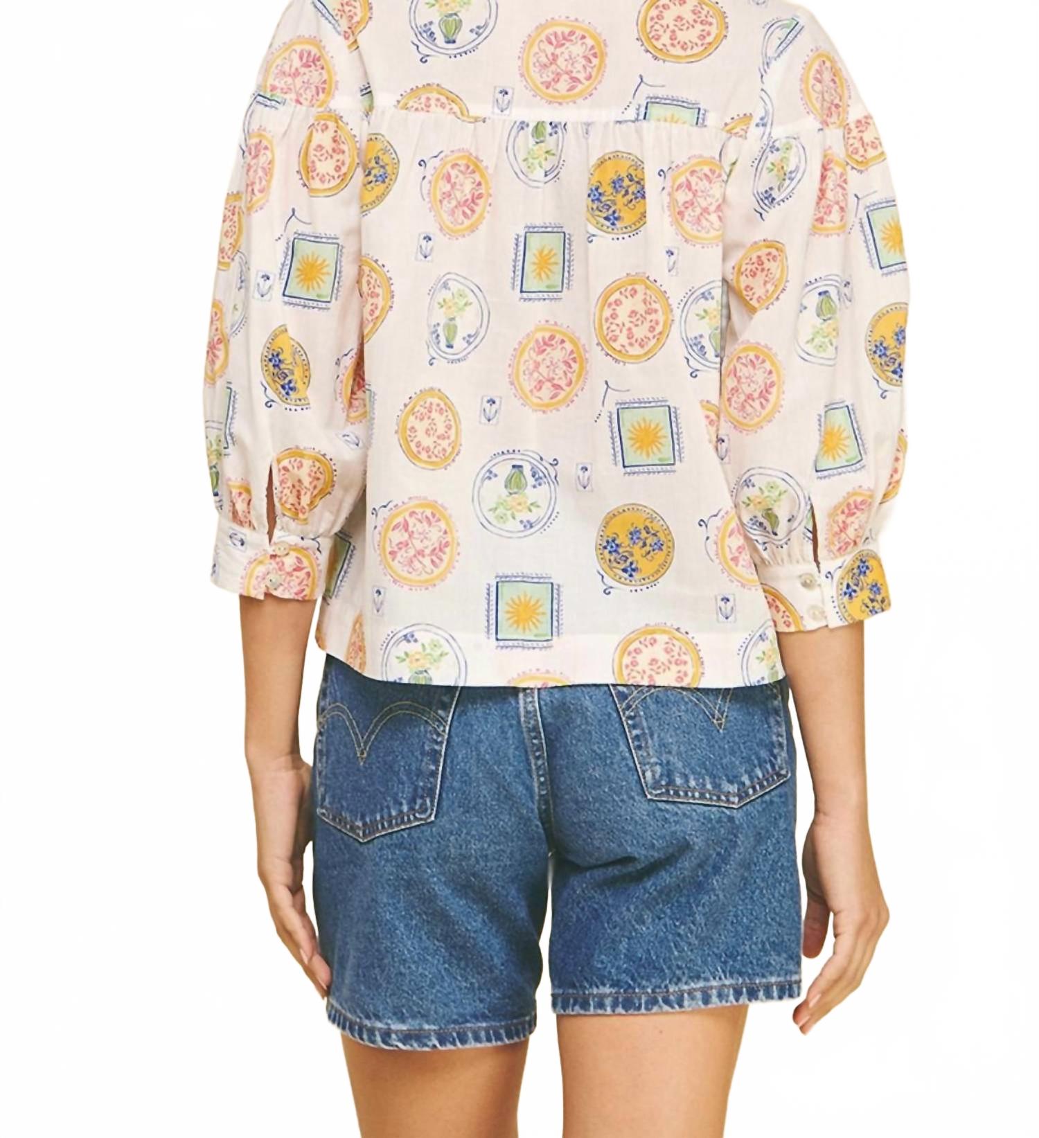 Блузка с принтом Amalfi и пуговицами в белом цвете PINCH