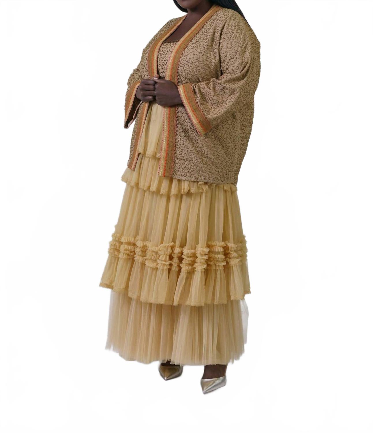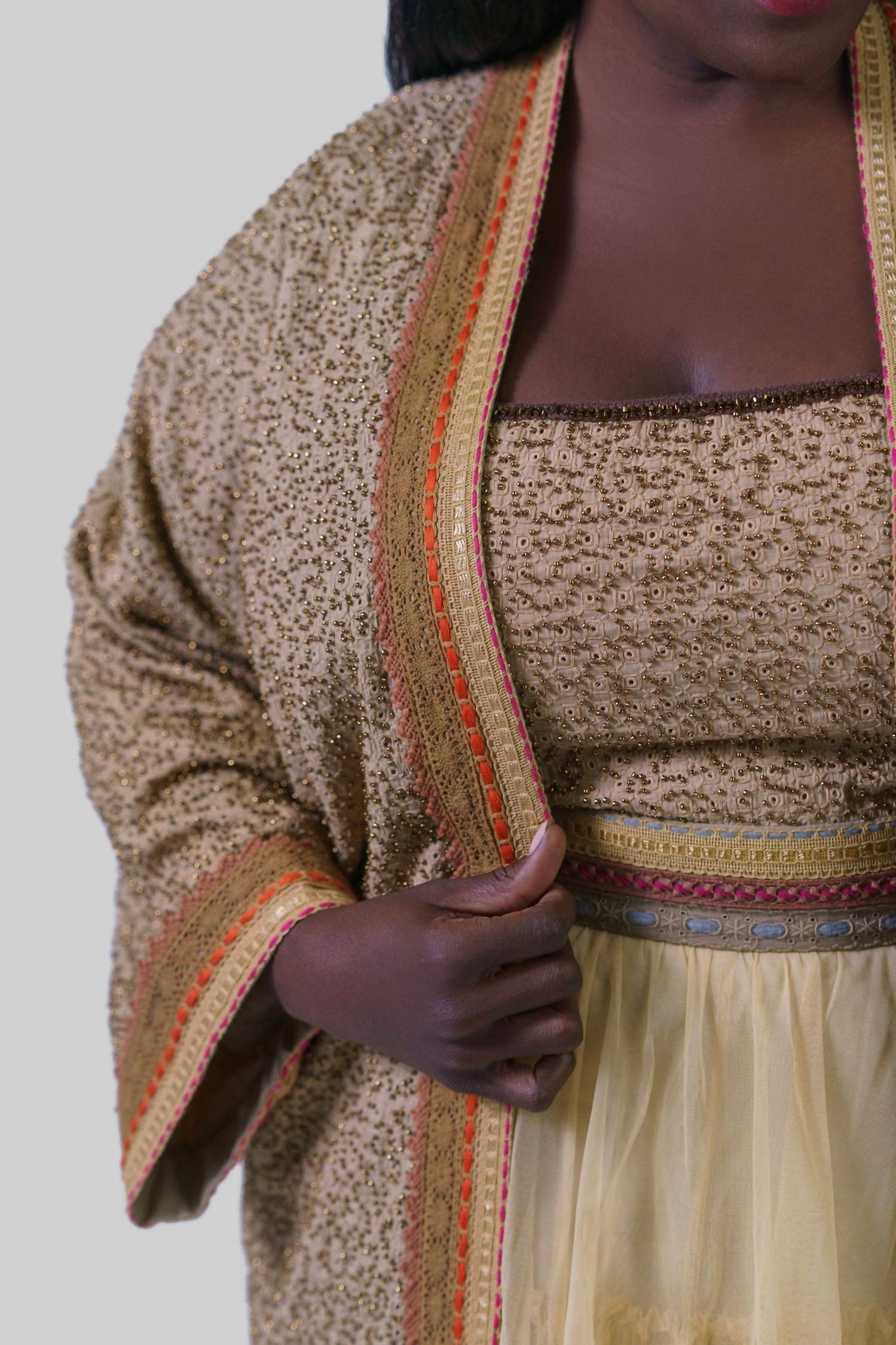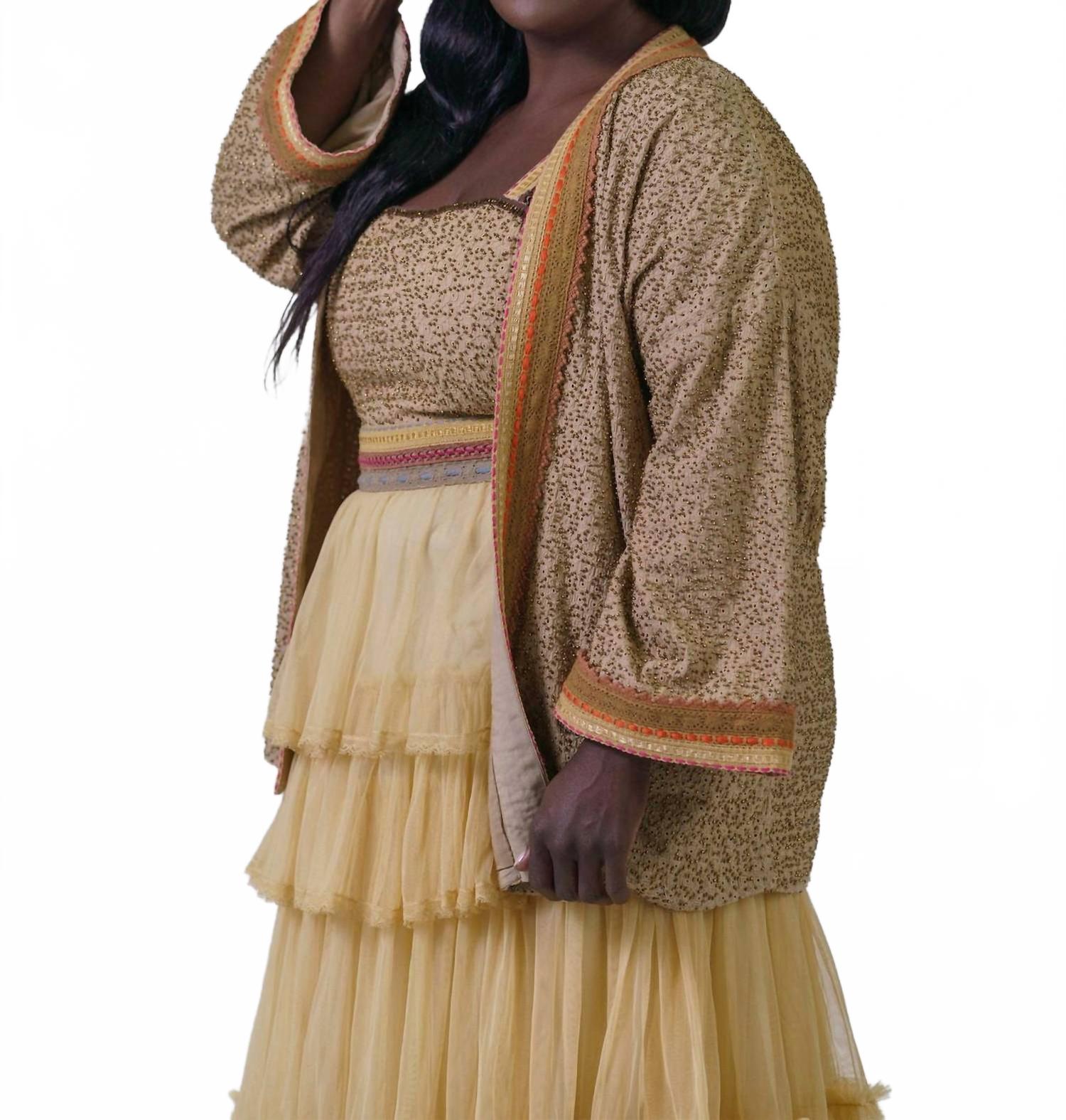 Откройте для себя изысканность и современный стиль с накидкой Bleona с длинным рукавом от -bl^nk-, представленной в теплом бежевом цвете. Этот кардиган отличается изящным узорчатым дизайном, круглым вырезом и изысканной отделкой на манжетах и планке. Изготовленный из 100% полиэстера, он легко застегивается на застежку для удобства ношения и идеально подходит для осенних путешествий. Рекомендации по уходу: машинная стирка и сушка на веревке.