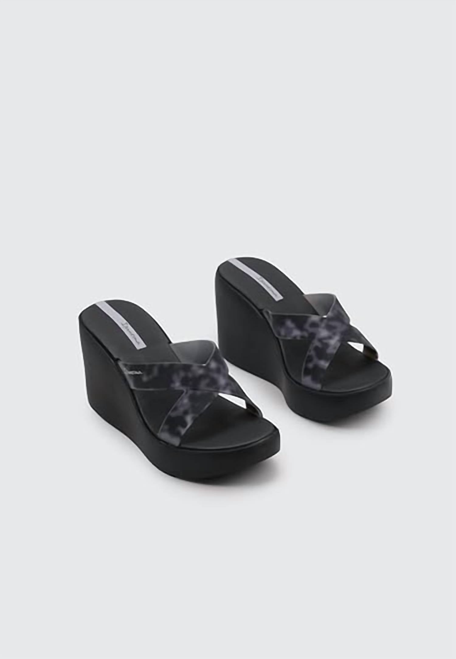 Женские клиновые сандалии Lofty Leopard в черно-сером цвете Ipanema