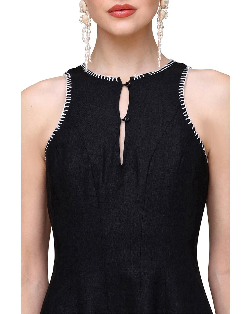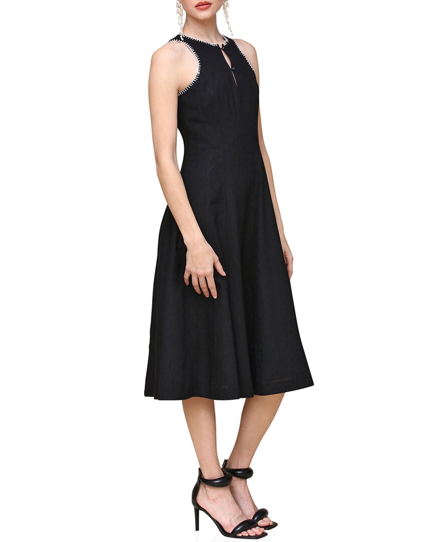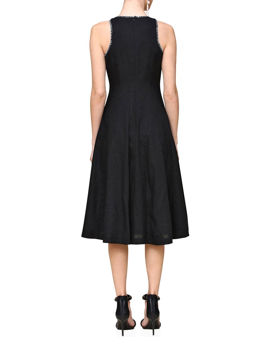 Avec Les Filles Халтер платье фасона свинг с панелями, черно-белый
