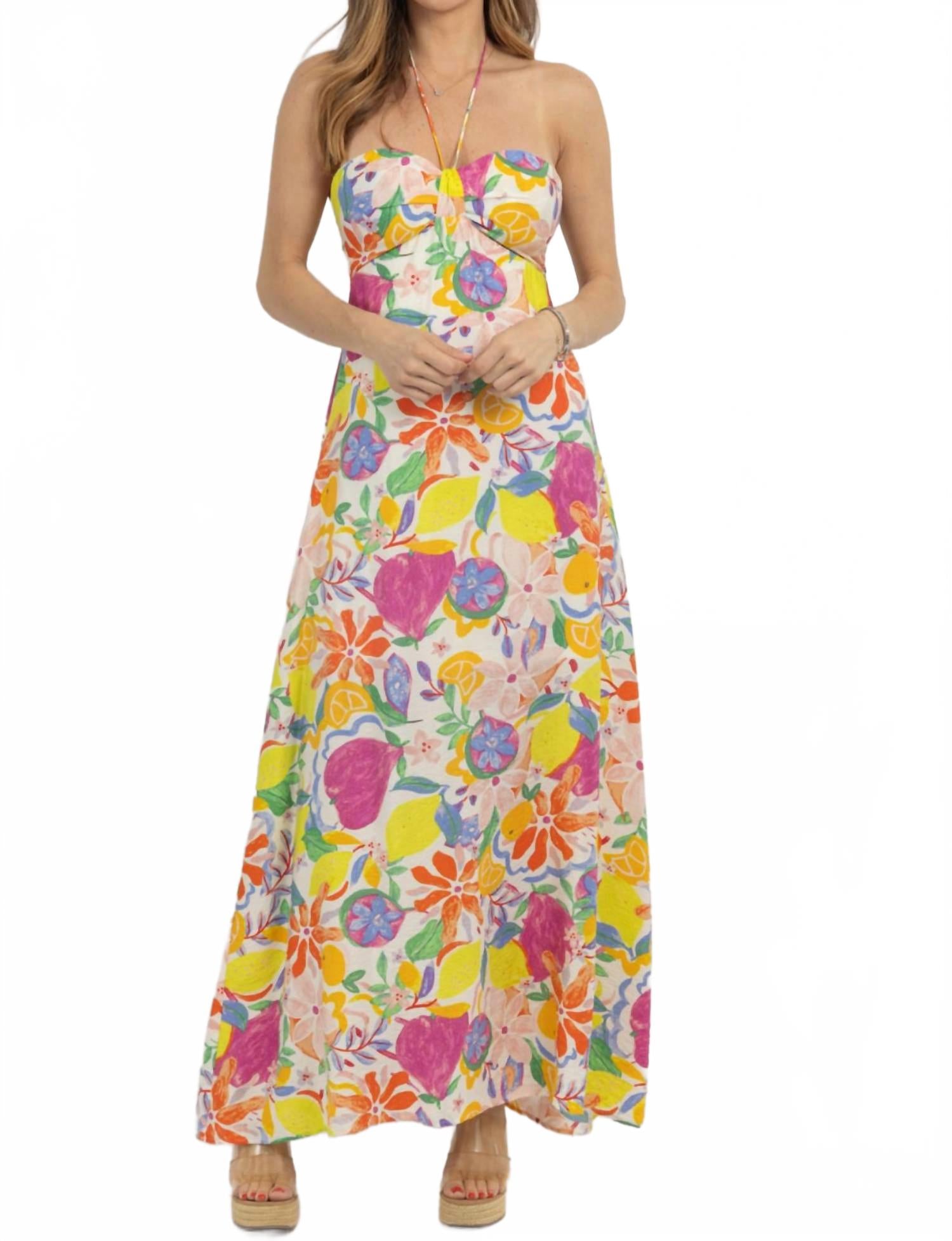 Фруктово-цветочное макси-платье в мультиколоре Fore Collection