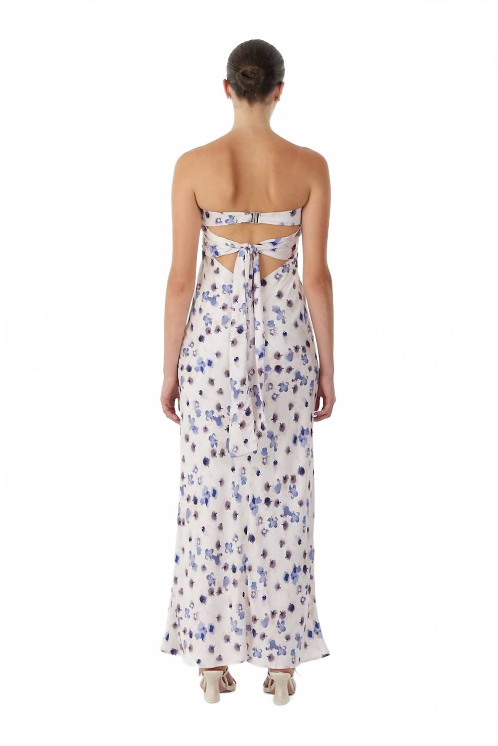 Представляем платье без бретелек Bias Strapless Dress от THIRD FORM с пленительным цветочным принтом в виде колокольчиков, идеально подходящее для вечерних мероприятий. Это макси-платье без бретелек выполнено из роскошной смеси купро (58%) и вискозы (42%), шелковистой на ощупь. Благодаря косому крою, оно элегантно драпируется, подчеркивая силуэт, и дополнено серебристой застежкой сзади и завязкой, а также слегка расклешенным подолом.