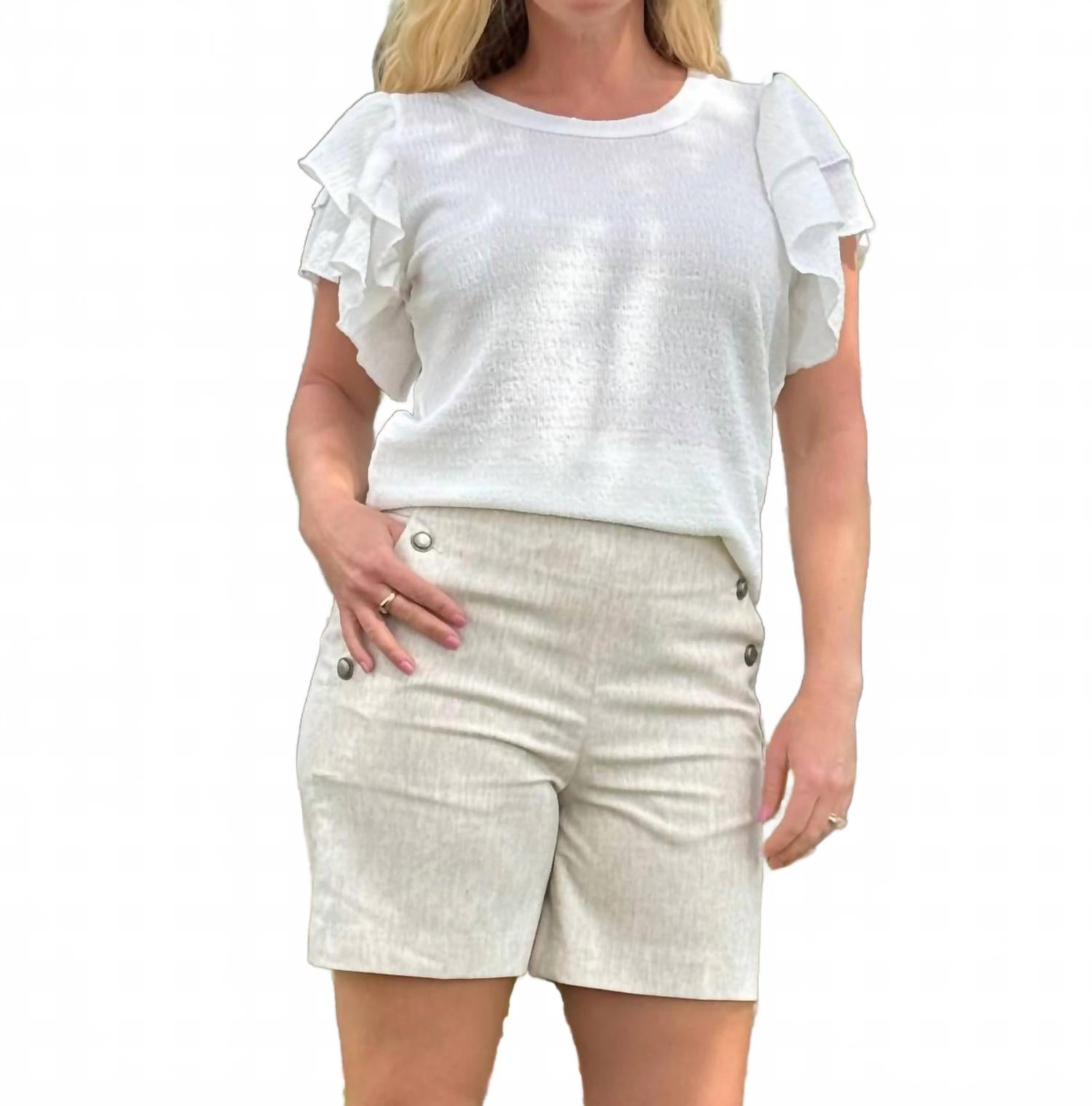 Представляем шорты Sybil Linen Blend Short от Charlie B - незаменимую вещь в вашей летней коллекции для путешествий. Эти кремовые шорты с однотонным рисунком и стильными пуговицами на карманах воплощают непреходящий стиль. Состав: 39% вискоза, 32% лен, 26% полиэстер, 3% спандекс. Застежка: молния. Уход: машинная стирка и сушка в разложенном виде на горизонтальной поверхности.