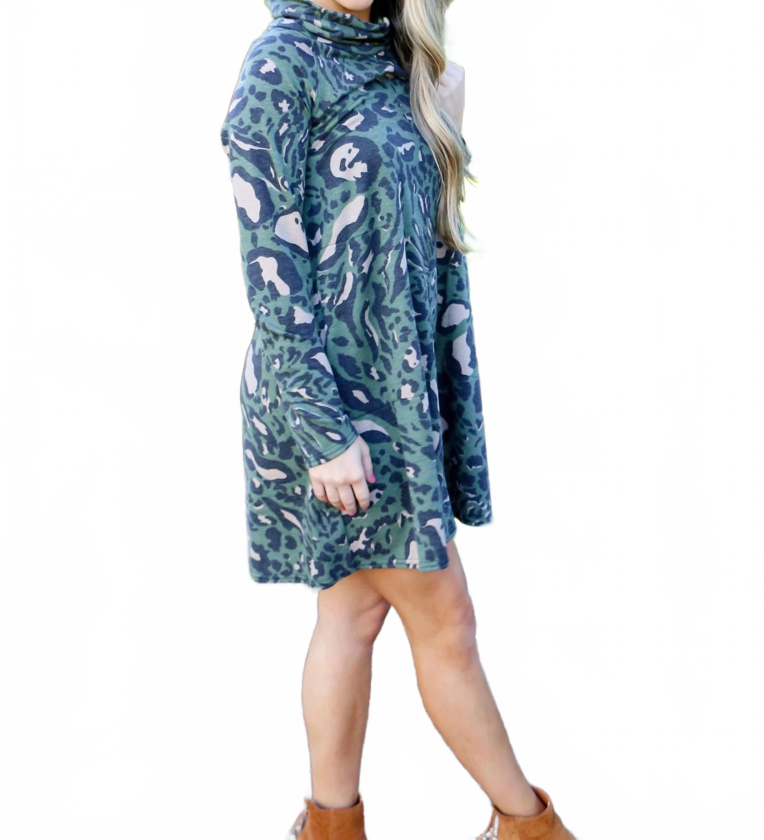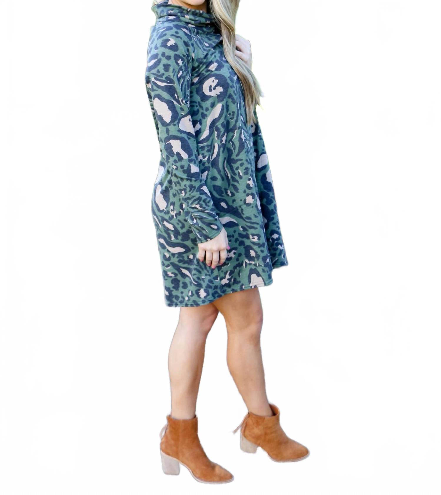 Комфортное и элегантное платье, которое вы будете носить круглый год. Представляем мини-платье Irresistible Moments с леопардовым принтом от Ivy Jane - эффектное украшение, идеально подходящее для званого ужина или празднования Дня Святого Патрика. Это платье А-силуэта с длинными рукавами украшено эффектным зеленым анималистичным узором, воплощающим яркую энергию моды 90-х. Платье удобно надевать благодаря застежке-липучке и стильному воротнику-стойке. Уход: машинная стирка для легкого ухода.