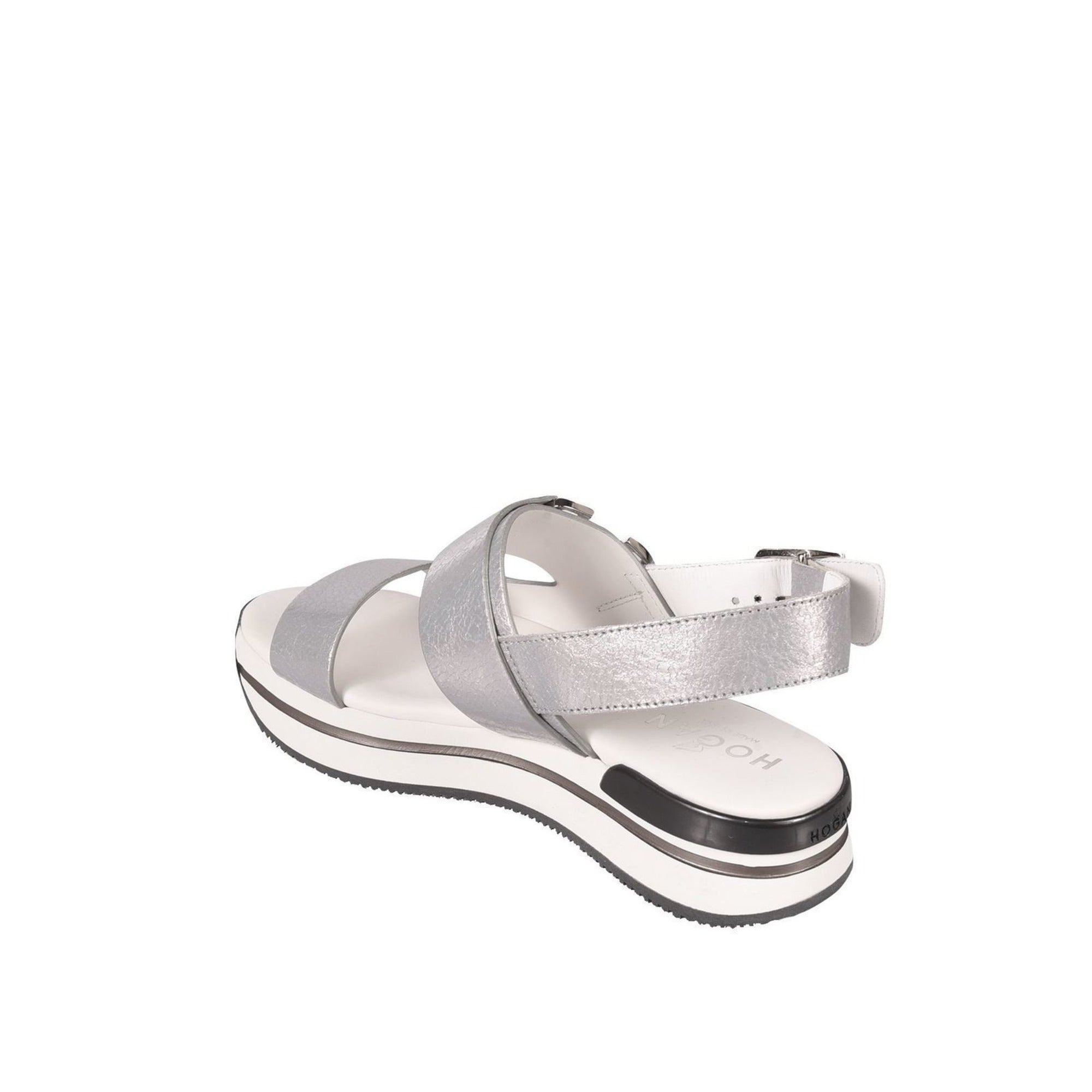 Сандалии Hogan H257 из серебристой телячьей кожи имеют плоский дизайн. Эти сандалии сочетают в себе металлический блеск и элегантный силуэт, предлагая стильный и удобный вариант как для повседневной носки, так и для торжественных случаев.