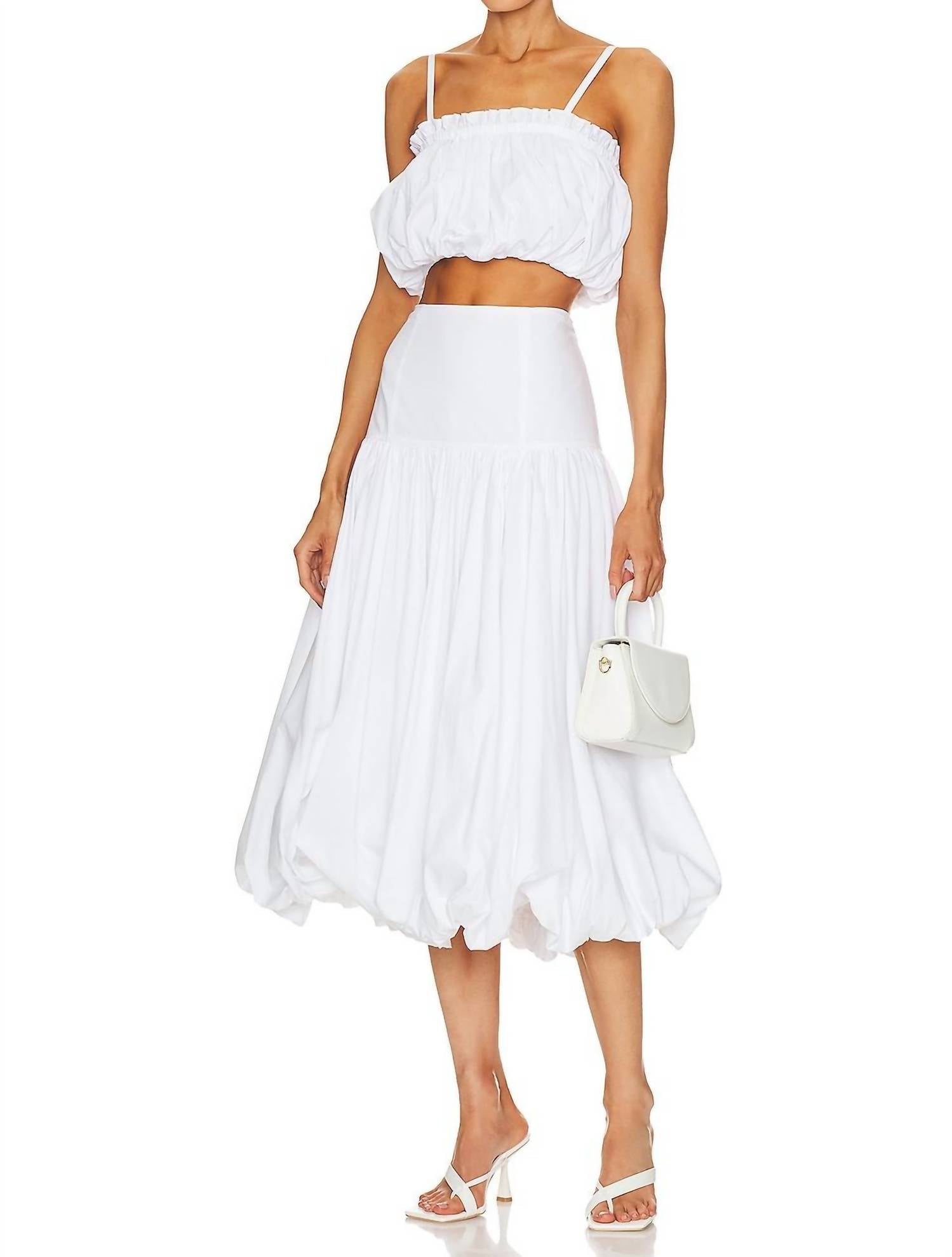 Дополните свой летний гардероб укороченным топом без рукавов Ivee Crop Puffball от cinq a sept, который обеспечит вам элегантность и комфорт. Этот укороченный топ на тонких бретельках, выполненный из 100% хлопкового поплина, имеет длину 23 см. Модель легко надевается и имеет объемные детали, которые придают ему элегантность, неподвластную времени. Этот однотонный белый топ, изготовленный из импортных материалов, лучше всего чистить в химчистке.