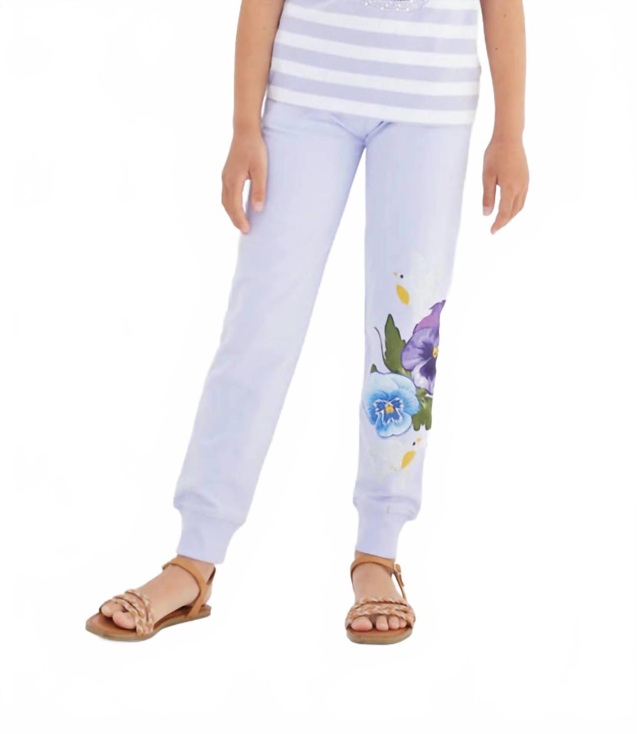Представляем брюки с принтом Viola от Sasha+Z - яркое дополнение к гардеробу любой девушки. Эти спортивные штаны с цветочным принтом, выполненные из 100% хлопка, имеют эластичный пояс и подол для удобной посадки. Сиреневый фон украшен элегантными фиолетовыми фиалками и птицами, украшенными стразами, создавая яркий мотив на левой штанине. Эти импортные спортивные штаны полной длины, созданные для стильных весенних праздников, таких как День благодарения, легко воплощают минималистичный тренд.