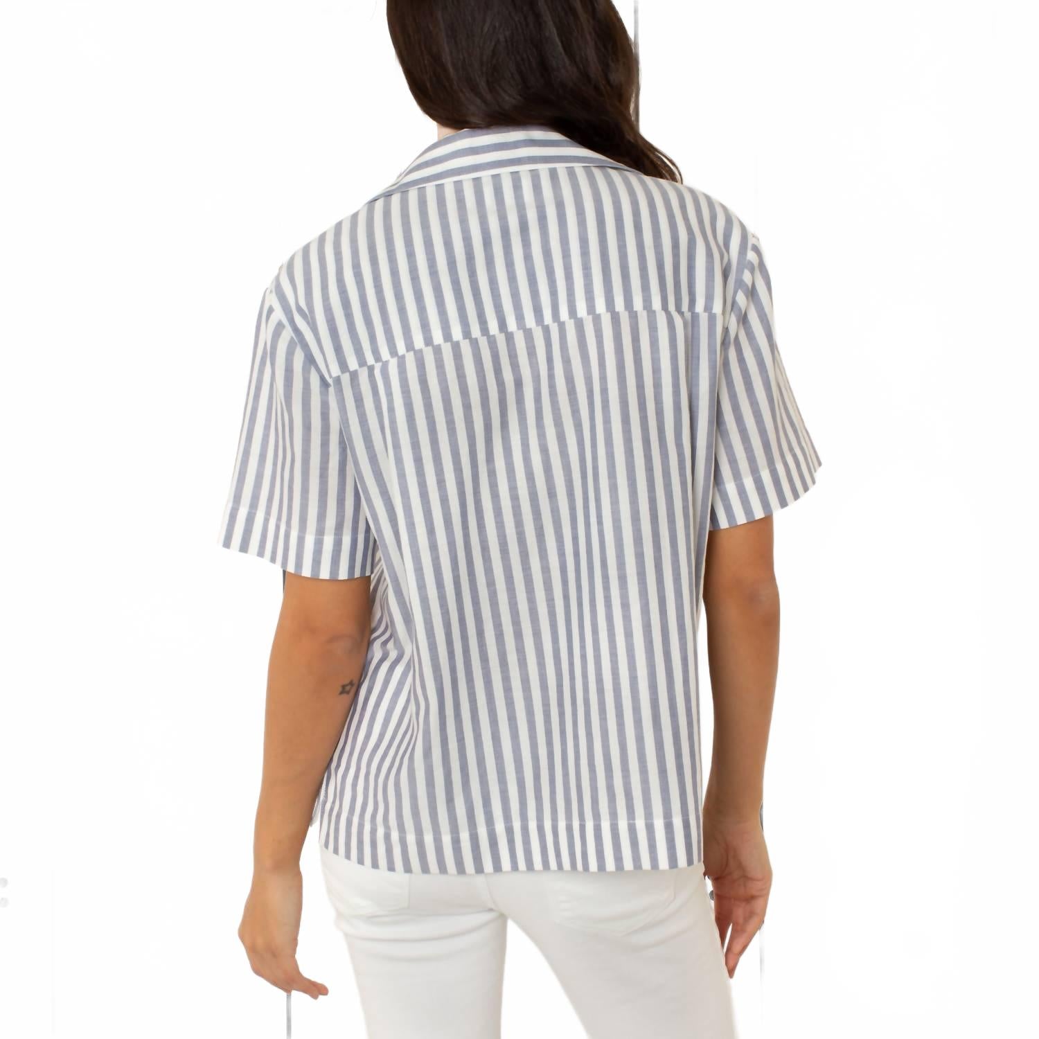 Не ищите дальше - вы нашли свою идеальную футболку! Ощутите классический стиль в рубашке-боулере Thirteen Seven Fancy Bowler в полоску True Blue Stripe, которая добавит игривости вашему гардеробу. Эта женская футболка с короткими рукавами, воротником с лацканами и потайной застежкой на пуговицы сзади обеспечивает идеальную посадку. Изготовленная из 100% хлопка, она обеспечивает воздухопроницаемость и комфорт. Рекомендации по уходу: машинная стирка и сушка на веревке для сохранения качества.